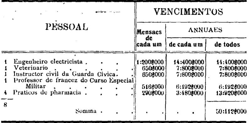 Artigo 9.º - O numero de aspirantes a officiaes não poderá exceder de 20, percebendo os vencimentos mensaes de 262$000.