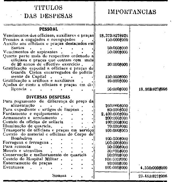 Tabella demonstrativa das despesas com a Força Publica em 1924