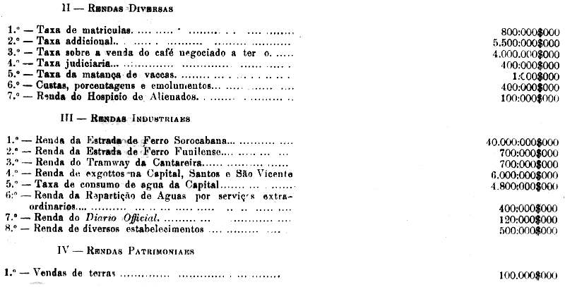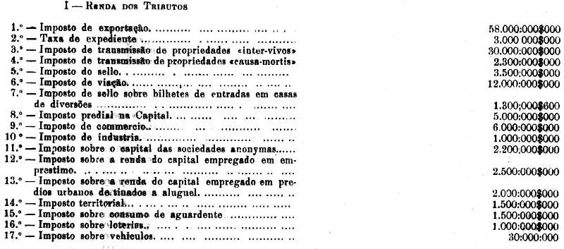 Artigo 10. - Areceita geral do Estado de São Paulo, para, o exercicio de 1924, é orçada em...............201.511:000$000 e será realisada com o producto que fôr arrecadado dentro do mencionado exercicio, sob os tributos abaixo resignados: