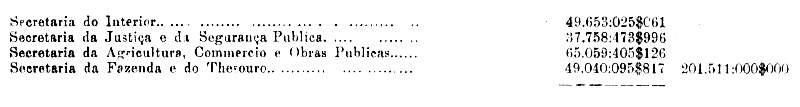 Artigo 8.º - Por conta da importancia fixada no artigo 1.º, é o governo outorizado a despender com os serviços a cargo da Secretaria da Fazenda e do Thesouro do Estado a quantia de 49.040:095$817.