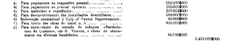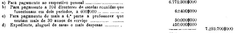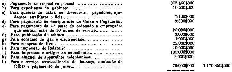 Artigo 7.º - E' p opder executivo outorizado a abrir creditos supplementares para fazer face ao excesso de despesa que se verificar nas seguintes rubricas: