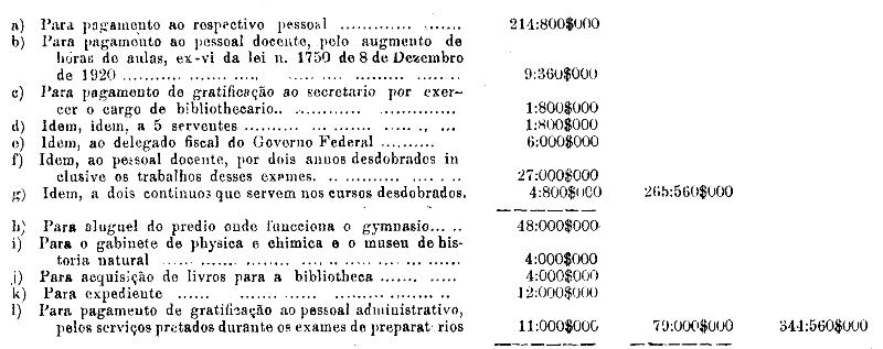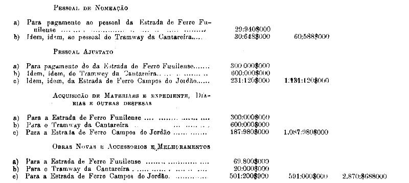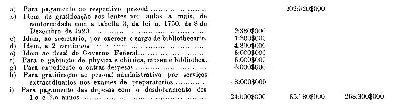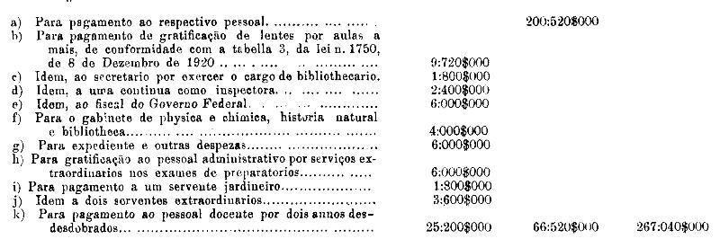 Artigo 3.º - E' o Poder Executivo auctorizado a abrir creditos supplementares para fazer face ao excesso de despesa que se verificar nas seguintes rubricas: