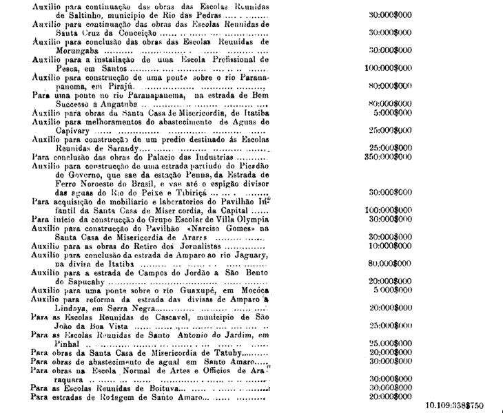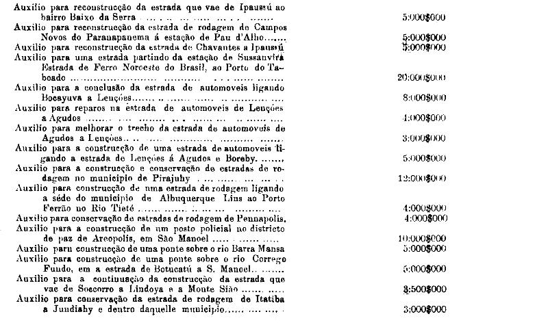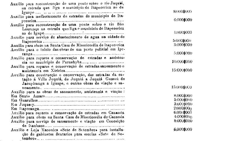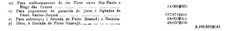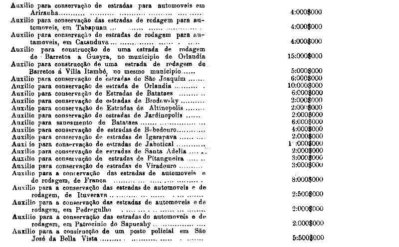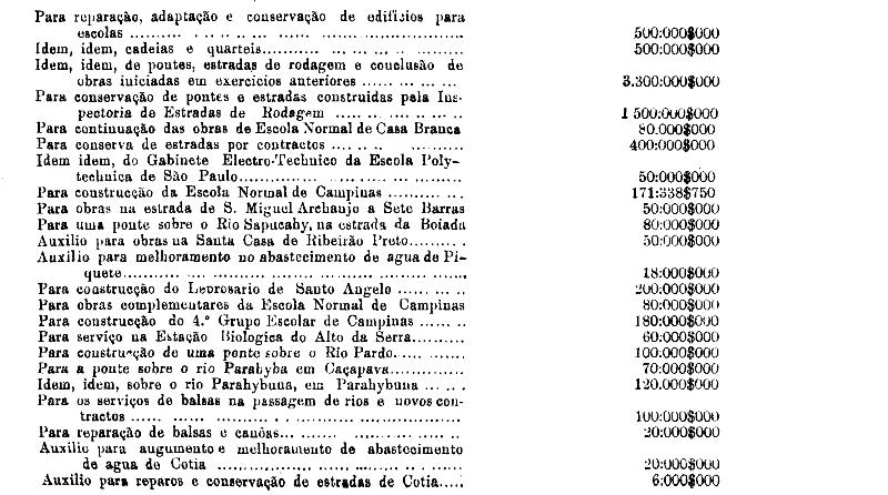 Artigo 6.º - Por conta da importancia fixada no artigo 1.° é o governo auctorizado a despender com os serviços a cargo da Secretaria da Agricultura, Commercio e Obras Publicas a quantia de rs. 65.059:405$126.