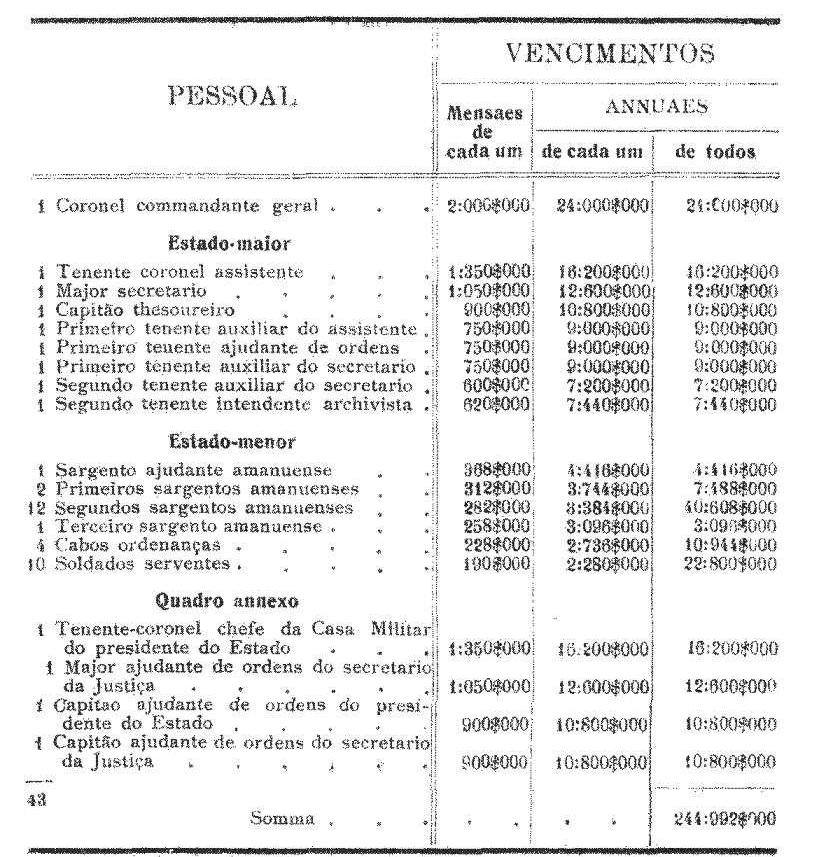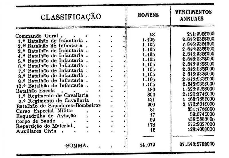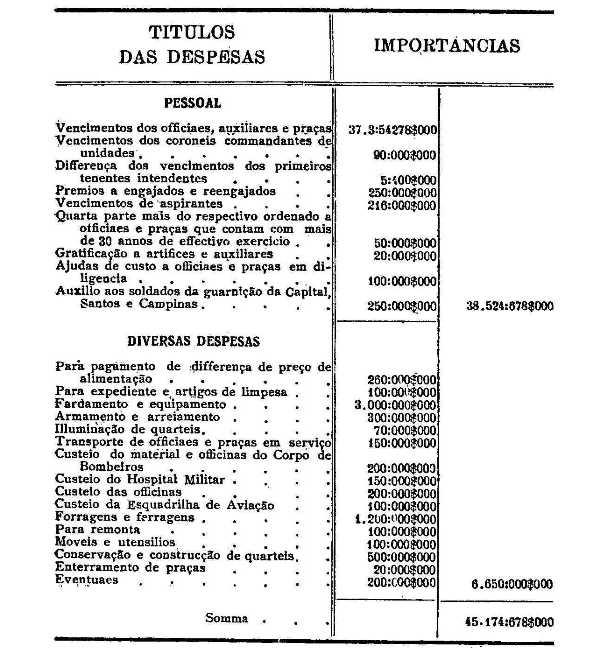 Tabella demonstrativa das despesas com a Força Publica em 1925