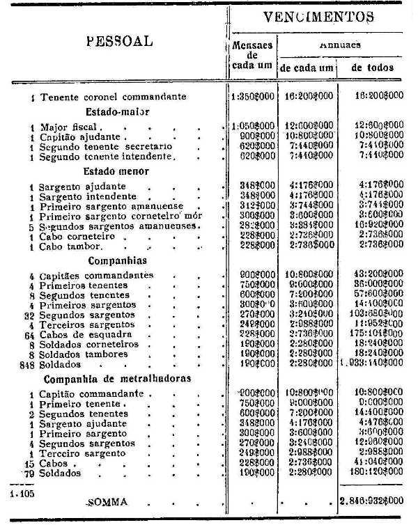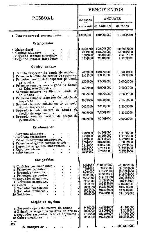praças e auxiliares, e as demais despesas serão os fixados nas tabellas