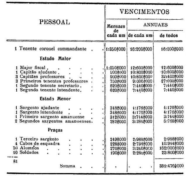 officiaes não poderá exceder de 50, percebendo os vencimentos mensaes de