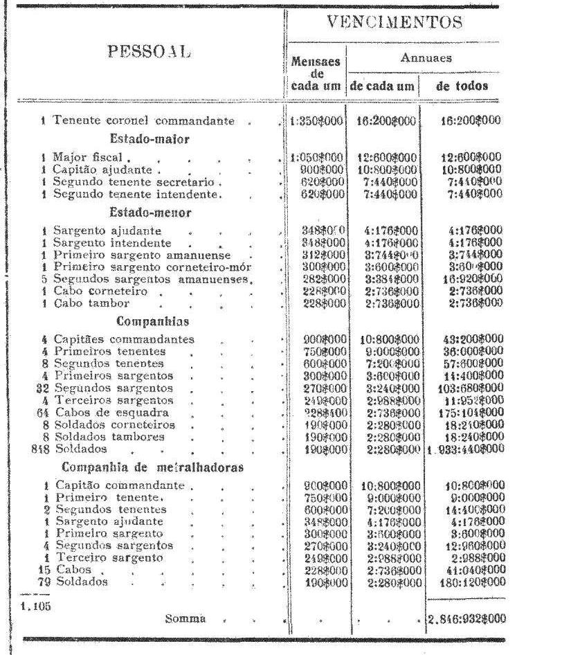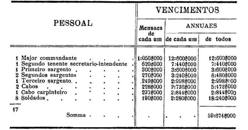 gratificação de 1$000 por dia de trabalho, e 800 réis as demais praças.