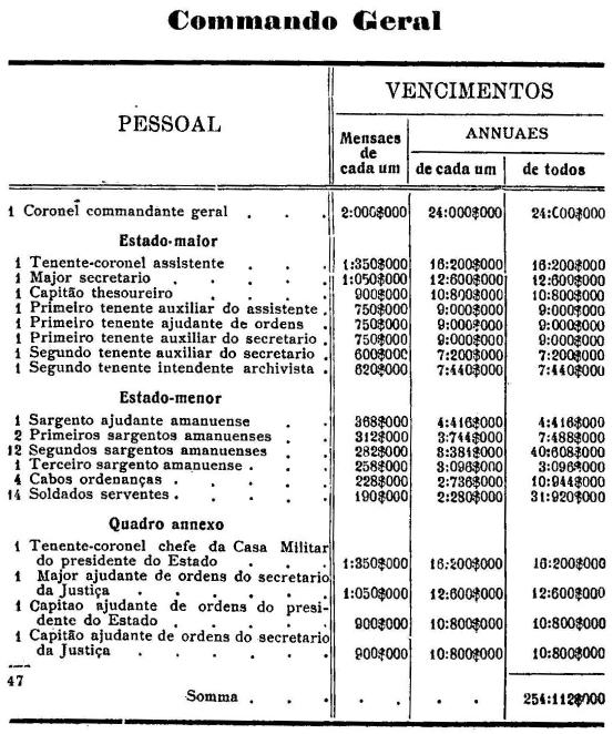 Artigo 7.º - A titulo de ajuda de custo, o Commandante Geral