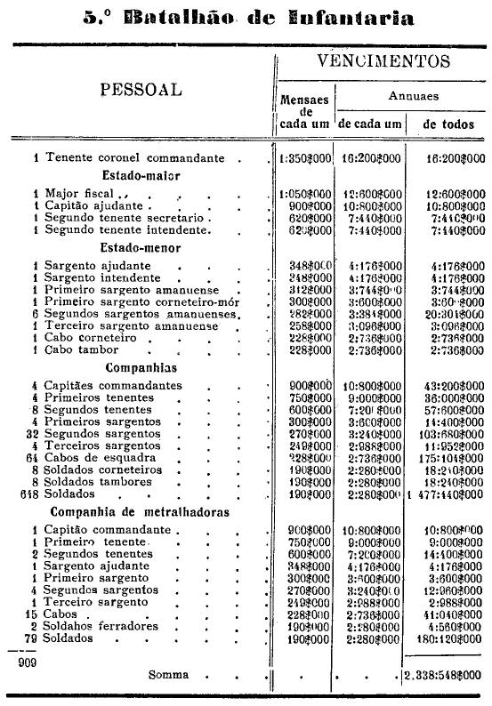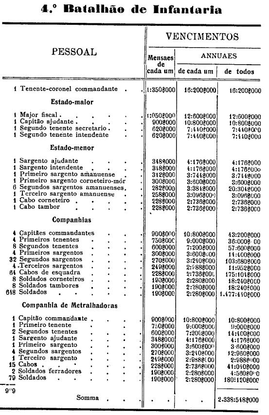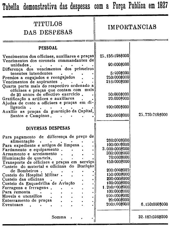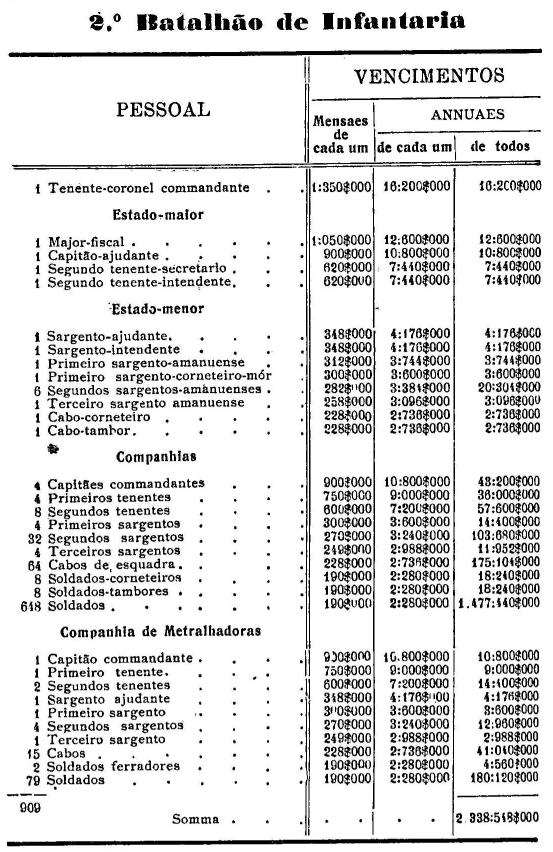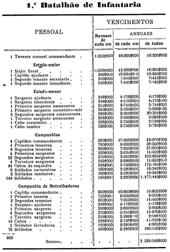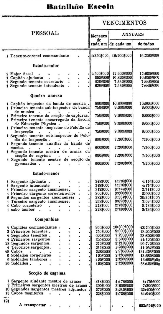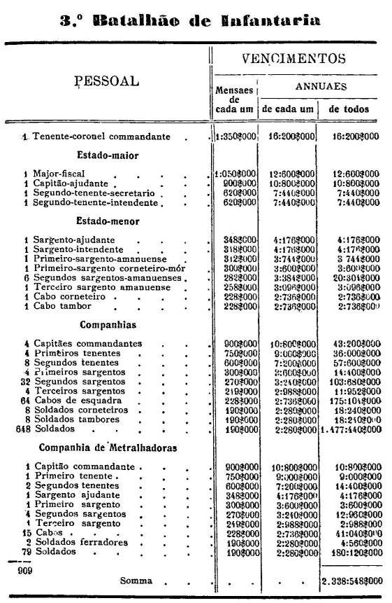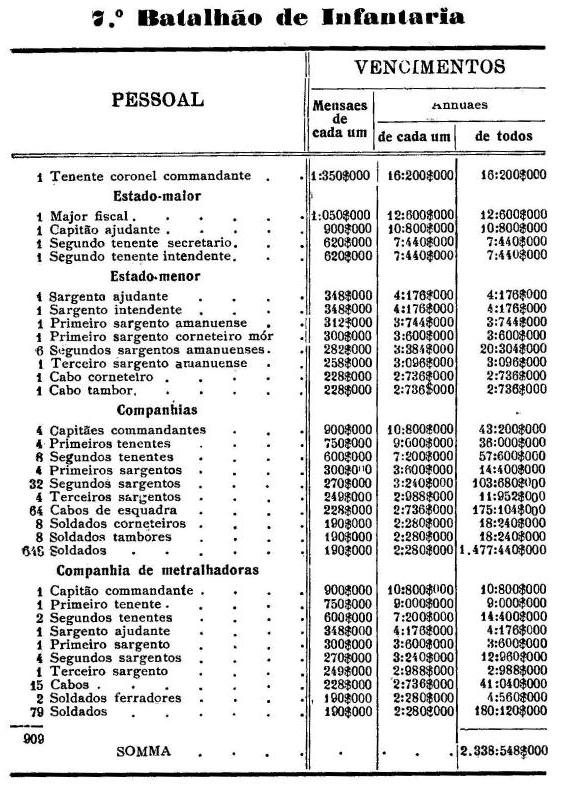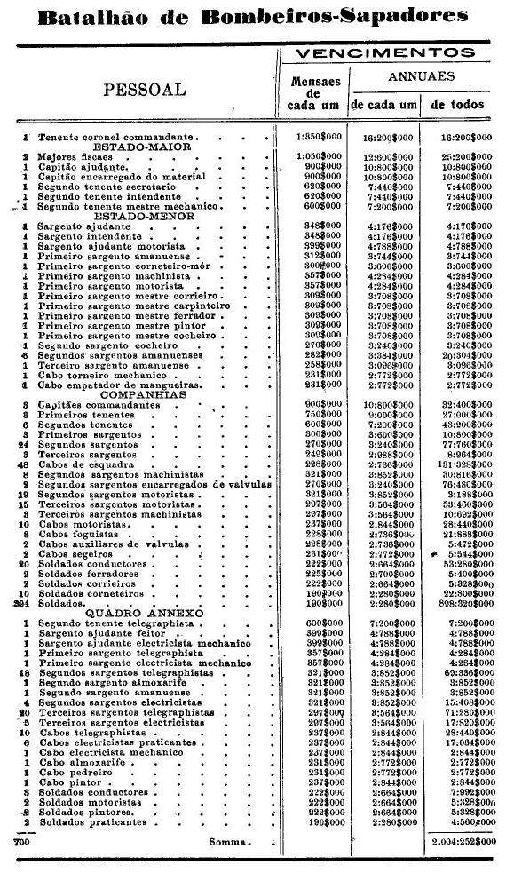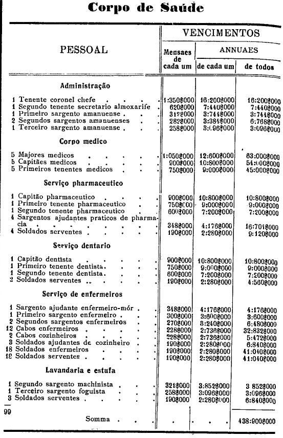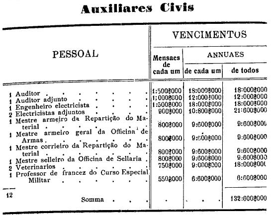 Artigo 3.º - Os vencimentos dos officiaes, praças e auxiliares, a as demais despesas serão os fixados nas tabellas annexas.