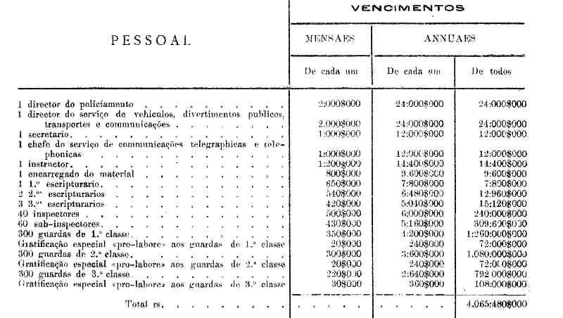 TABELLA DE VENCIMENTOS DO PESSOAL DA GUARDA CIVIL DA CAPITAL