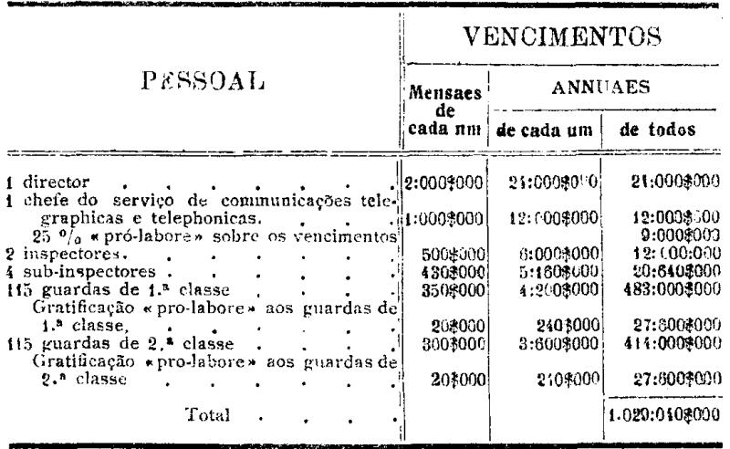Artigo 5.º - Os vencimentos do pessoal e as demais despesas da Guarda Civil serão os constantes das tabellas annexas.