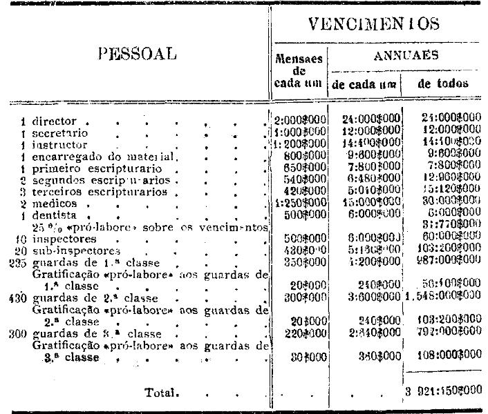 Tabella dos vencimentos do pessoal do serviço de policiamento da Guarda Civil da Capital