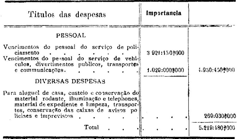 para o serviço de policiamento, dentro dos saldos das verbas desta lei,