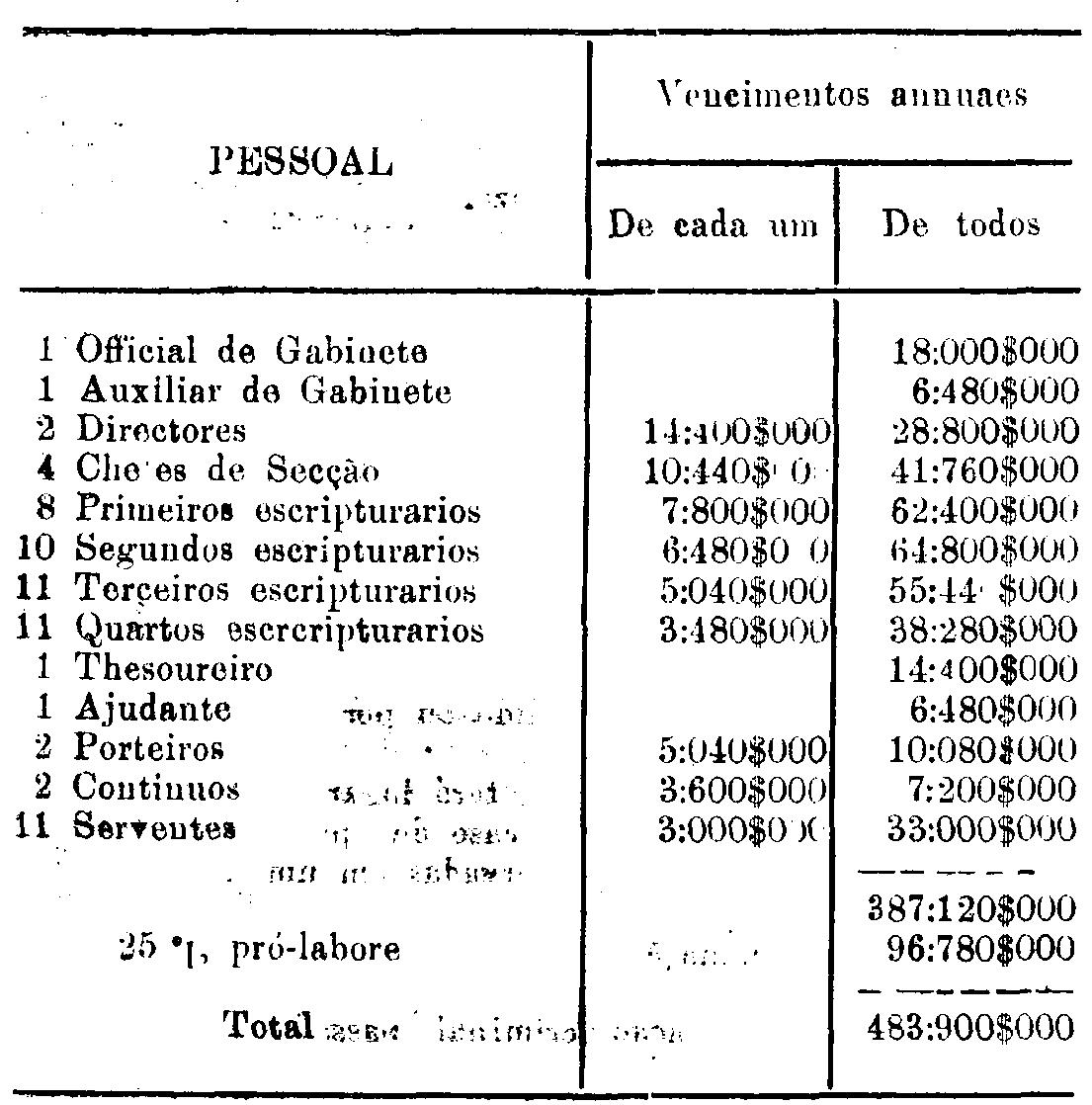 Os vencimentos dos funccionarios são os das tabellas annexas,