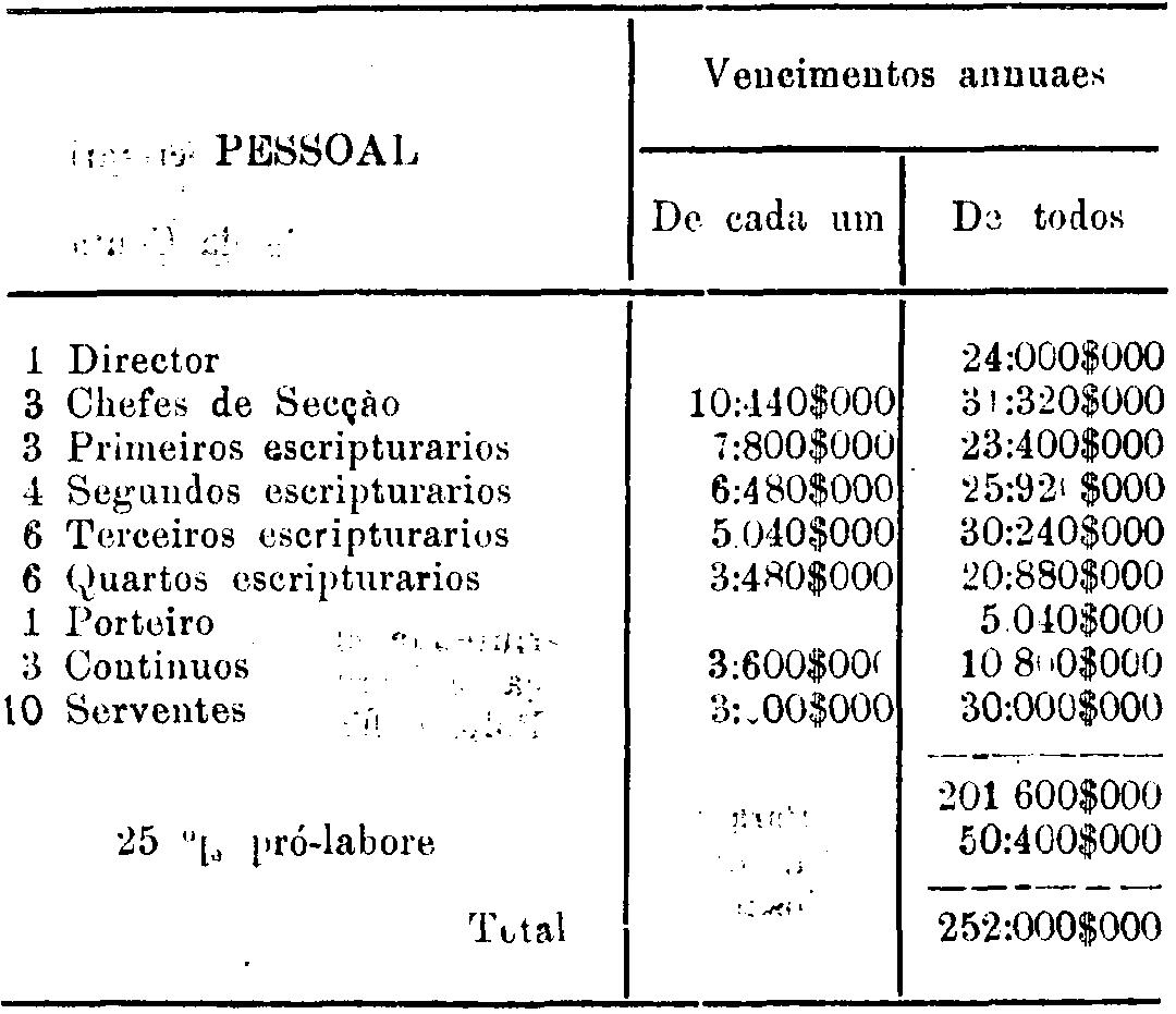 Artigo 10. - A Directoria da Contabilidade terá e seguinte pessoal: