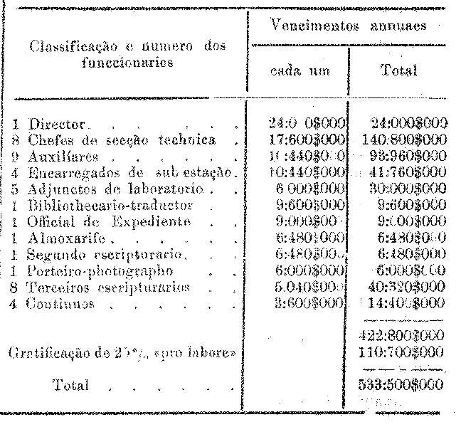 Artigo 7.º - Os vencimentos fixos do pessoal do quadro são os da tabella annexa.
