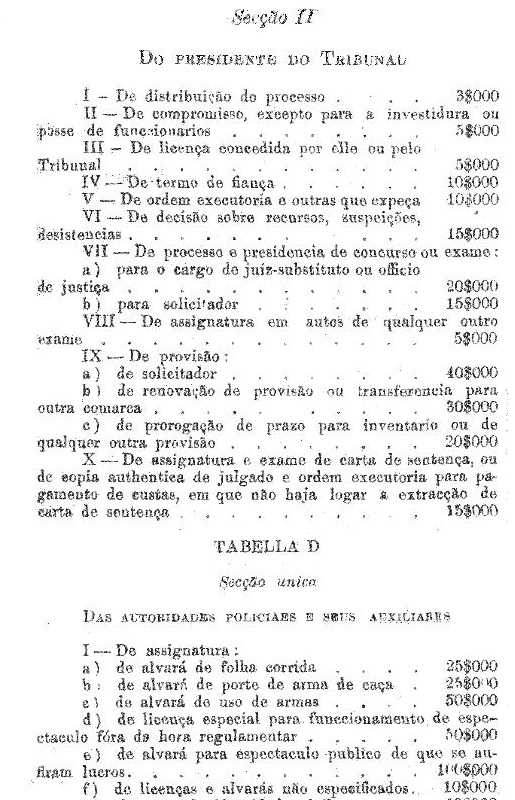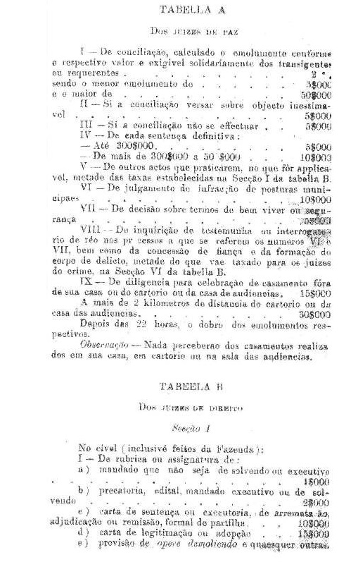 Artigo 1.º - Os emolumentos e salarios devidos pela expedição e preparo dos feitos serão cobrados de accôrdo com as tabellas annexas.