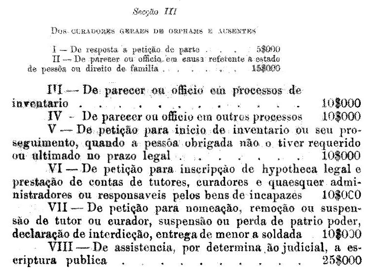 Observação - Os emolumentos dos numeros I a IV se repetirão todas as vezes em que devam Officiar os curadores, segundo os termos do processo, salvo si por mais de uma vez tiverem de dizer sobre o mesmo assumpto, caso em que terão doreito a um só emolumento.