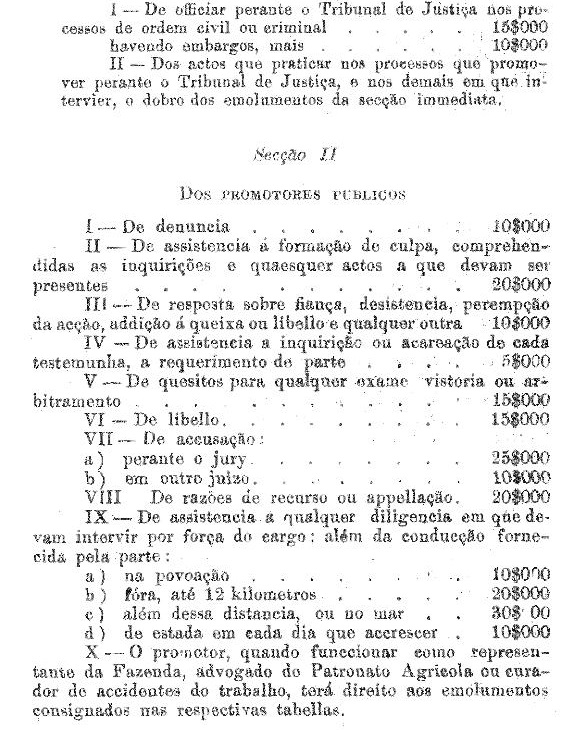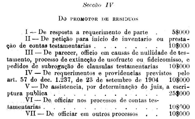 Observação - Os emolumentos dos numeros I e II se repetirão todas as vezes em quer deva officiar o promotor de residuos, salvo si por mais de uma vez tiverem de dizer sobre o mesmo assupto, caso em que terão direito a um só emolumento.