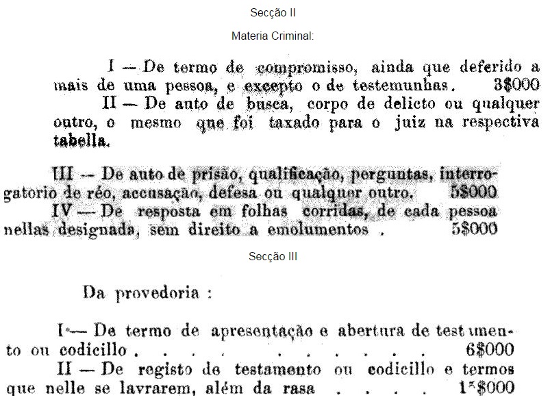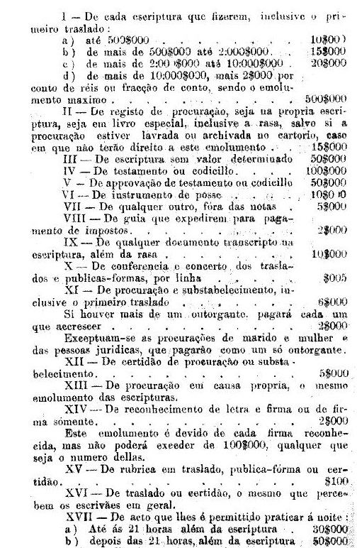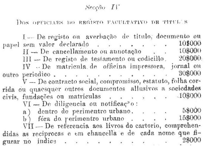 Observação. - Nada perceberão pela transcripção nas escripturas das sisas ou outro conhecimento de pagamento de imposto.