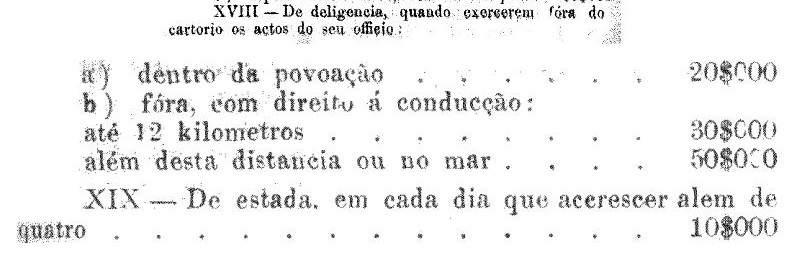 XXII - De todos os actos de seu officio que se praticarem fóra do auditorio costumado, exceptuadas as intimações ou citações, o mesmo que, a titulo de diligencia e estada, foi taxado para os tabelliães.