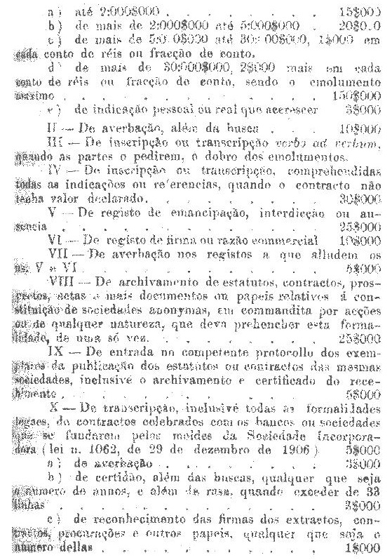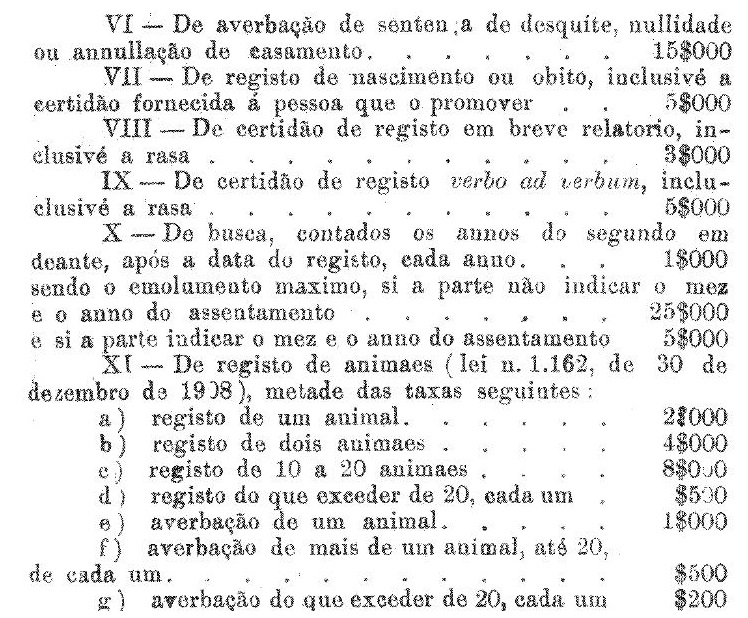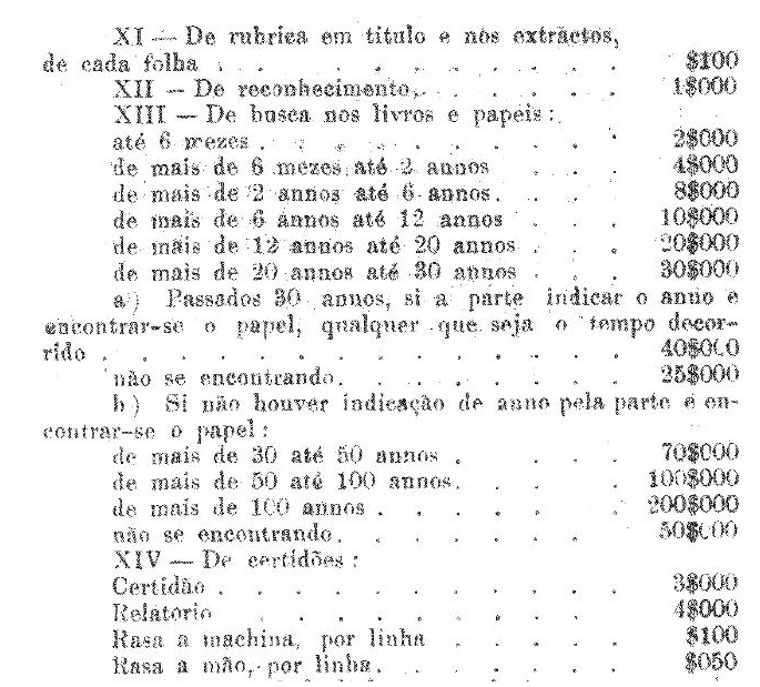 IX - Pelas buscas nos livros e papeis de seu archivo, pelas certidões que delles extrahirem e pela rasa e demais actos de officio, o que foi taxado para os officiaes do REgistro Geral e de Hypothecas.