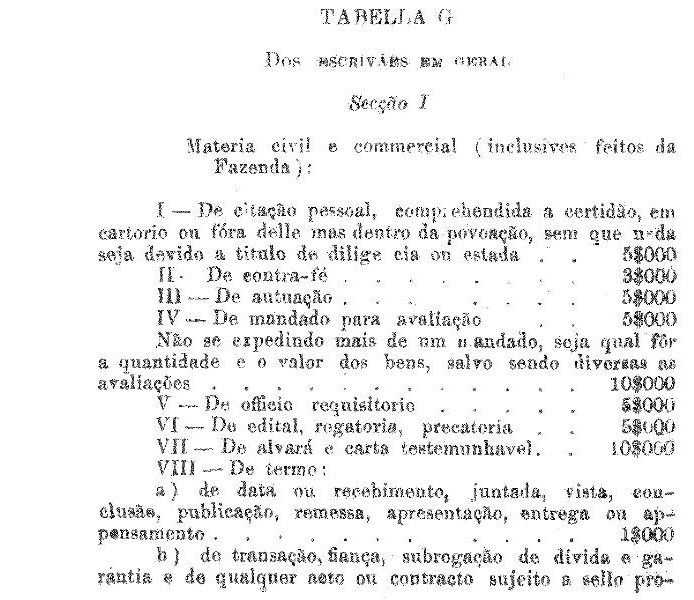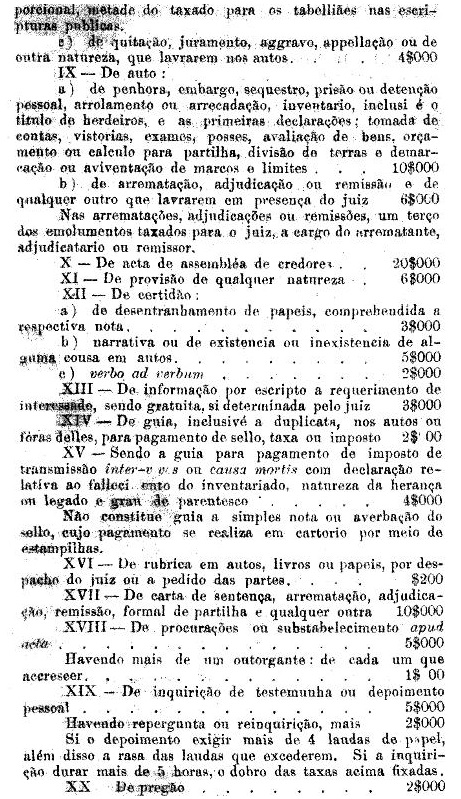 IX - De onformações, certidões, buscas e diligencias, o mesmo taxado para os escrivães em geral.