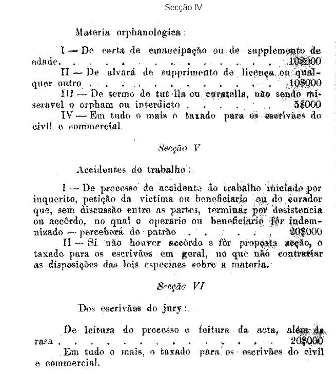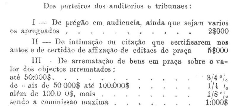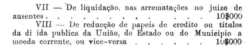 Observação - Na contagem de juros de diversos titulos, si a somma da contagem de todos elles não exceder de 3 annos, o salario será calculado com referencia á somma dos juros de todos, para o effeito de se cobrar a taxa correspondente a tal somma, conforme o disposto no numero III, letra b.