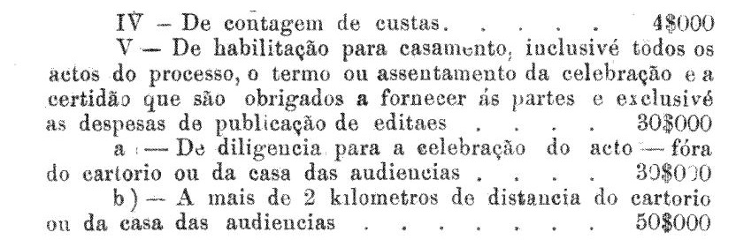 Observações - Se os nubentes não residirem no mesmo districto e o casamento se realizar no de residencia de um delles, o official que lavrar o respctivo termo perceberá dois terços dos emolumentos, cabendo ao outro o terço restante.