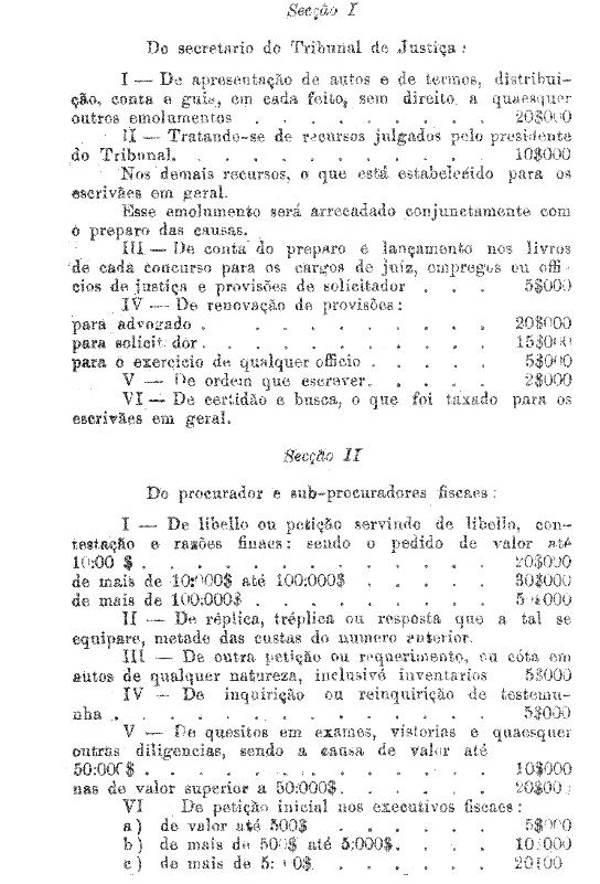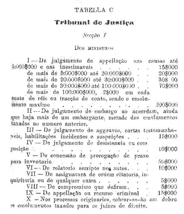 Artigo 22. - Compete acção executiva para cobrança de quaesquer emolumento, honorarios, salarios, despesas e castas taxados ou previstos neste regimento.