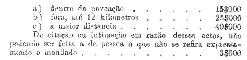 IV - De auto de diligencia não effectuada sem culpa sua, para cada official metade das taxas estabelecidas.