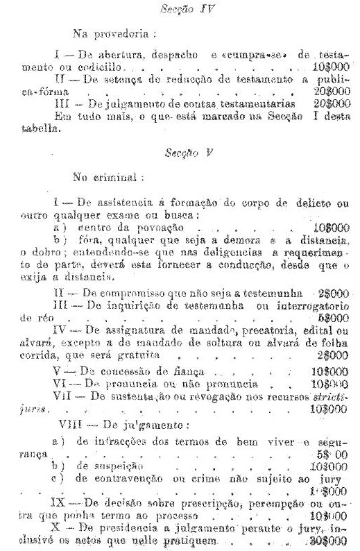 IV - Em tudo o mais o taxado para os escrivães do civil e commercial.