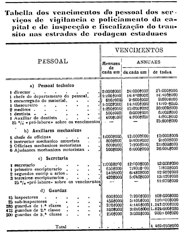 policiamento da Capital e de inspecção e fiscalização do transito nas estradas de rodagem estaduaes;