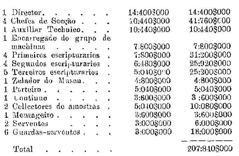 encarregado do grupo de machinas ; um zelador, 2 collectores de