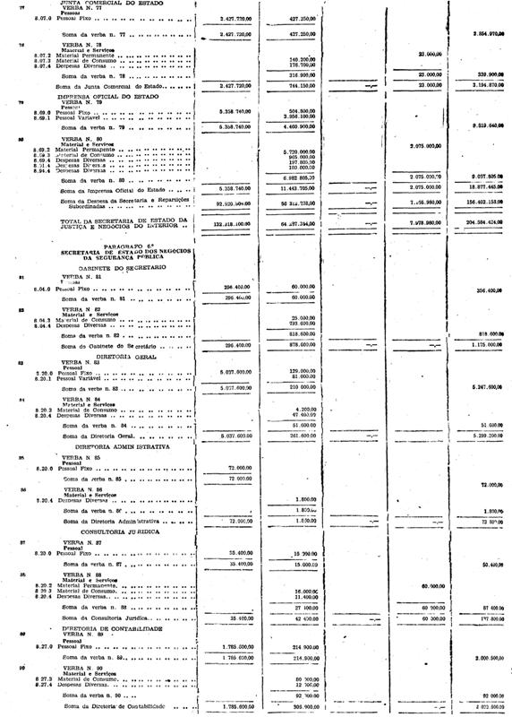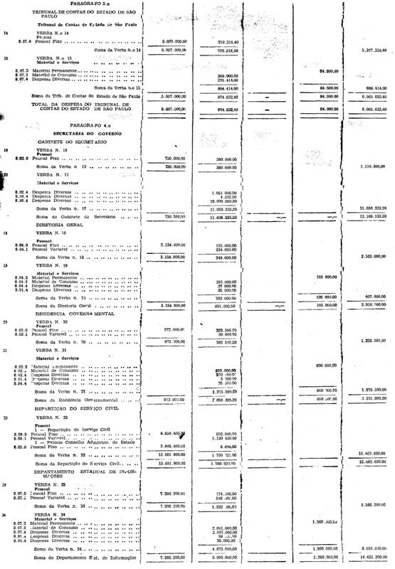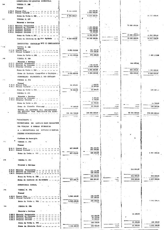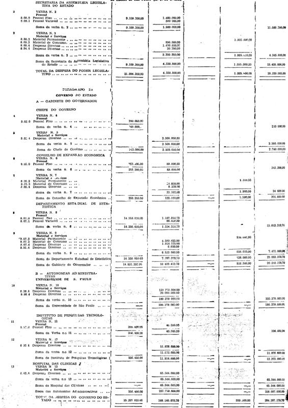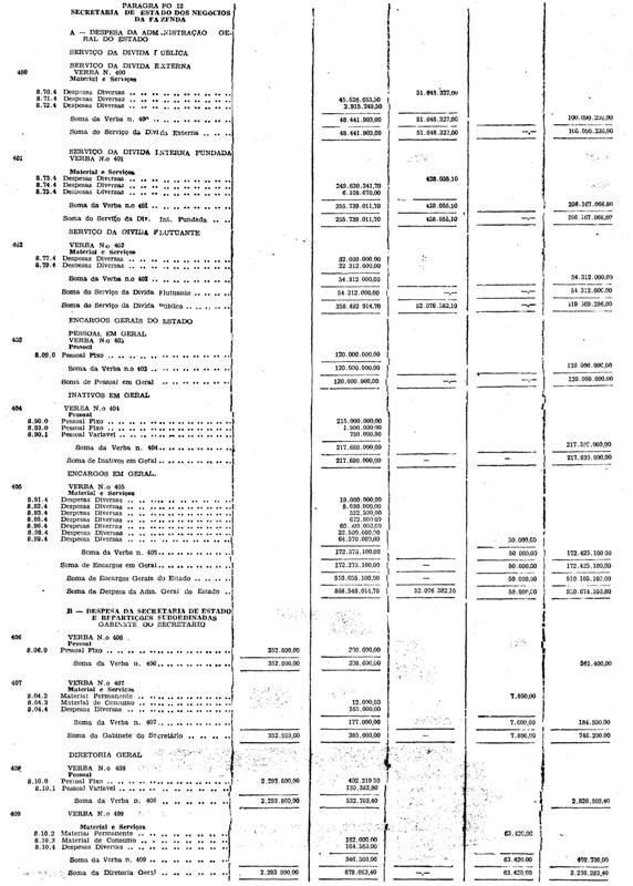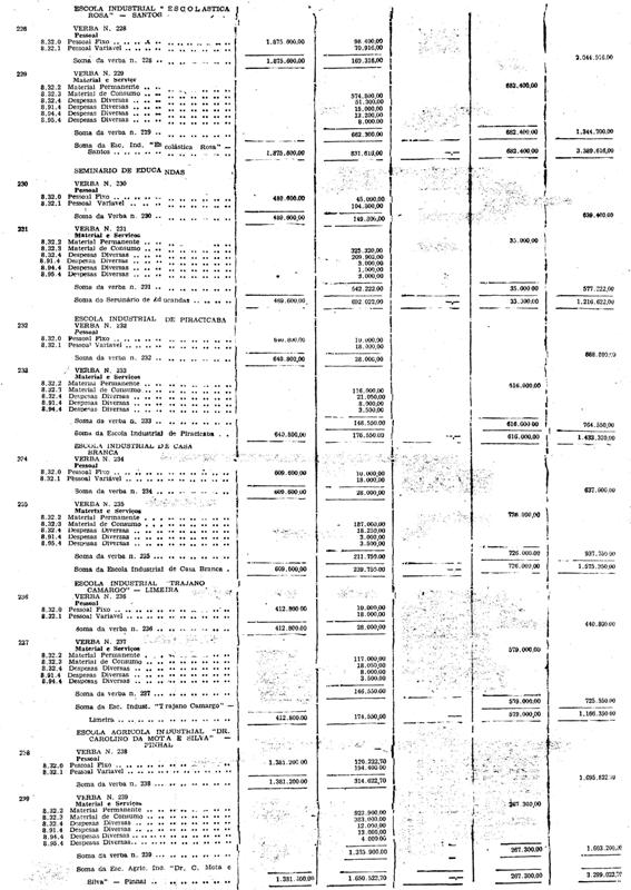 As verbas das estradas de ferro Sorocabana e Araraquara e as dotações dos itens