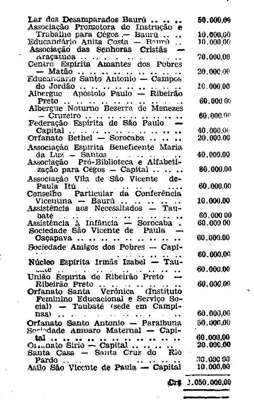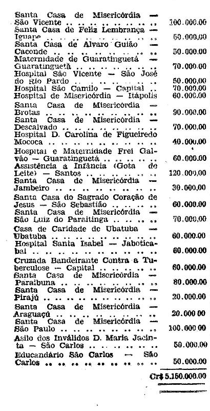 Cr$ 1.000.000,00, destinada à Associação Paulista