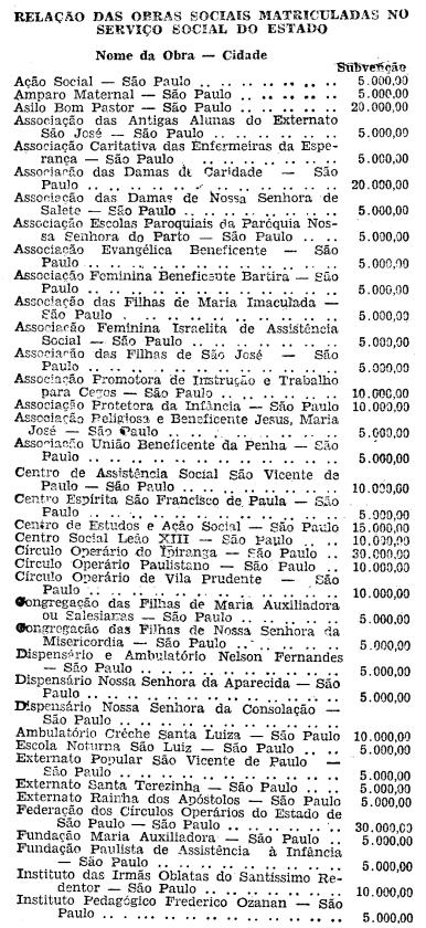 exercício pelo Serviço Social do Estado, a diversas obras assistenciais desta