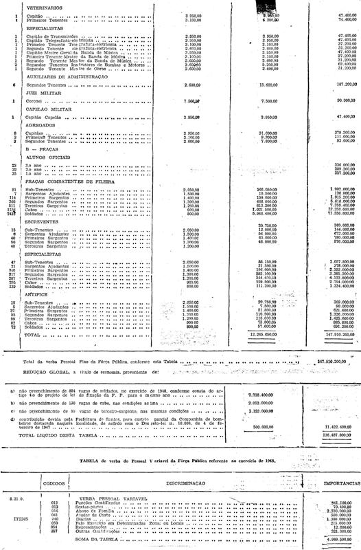 dos oficiais e praças da Força Pública, são as constantes das tabelas