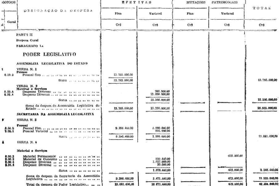 neste orçamento e que, na tabela explicativa à Assembleia Legislativa