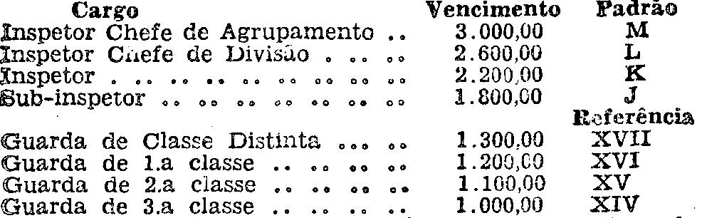 Artigo 1.° - Os vencimentos mensais do pessoal da carreira de guarda civil obedecerão a padrões nos termos desta lei.