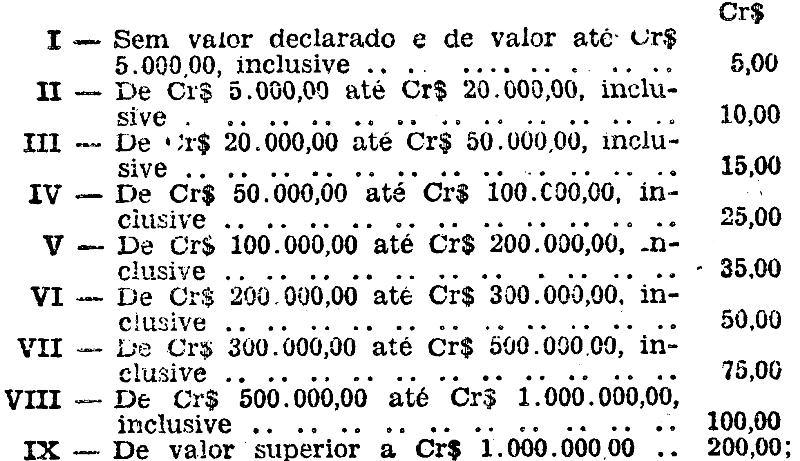 emitidas pelo Tesouro, com o valor mínimo de Cr$ 0,10 e máximo de Cr$