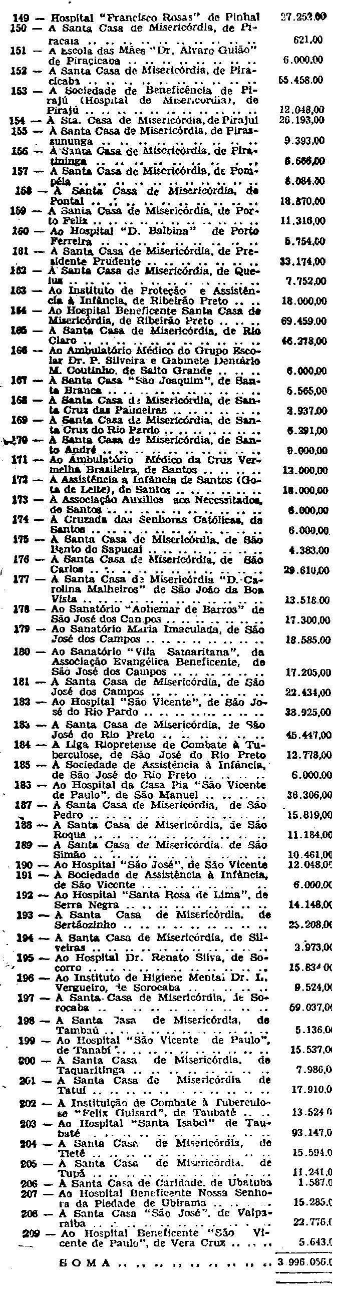No mesmo artigo, item 206, onde se lê: À Santa Casa de