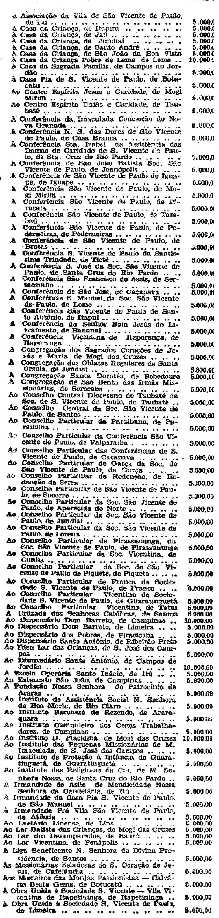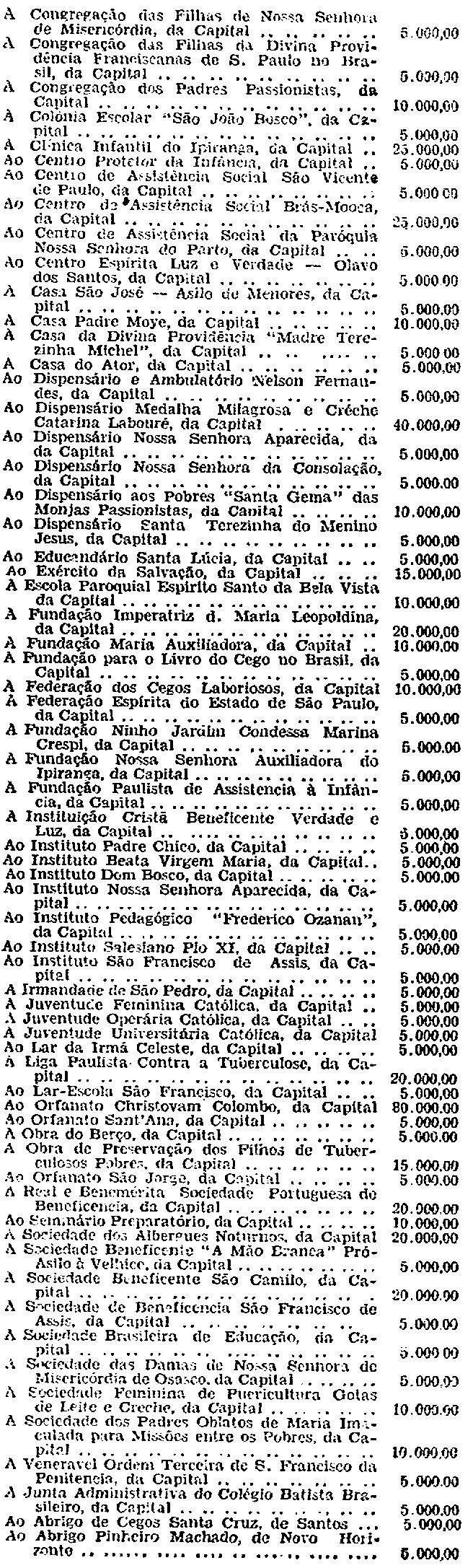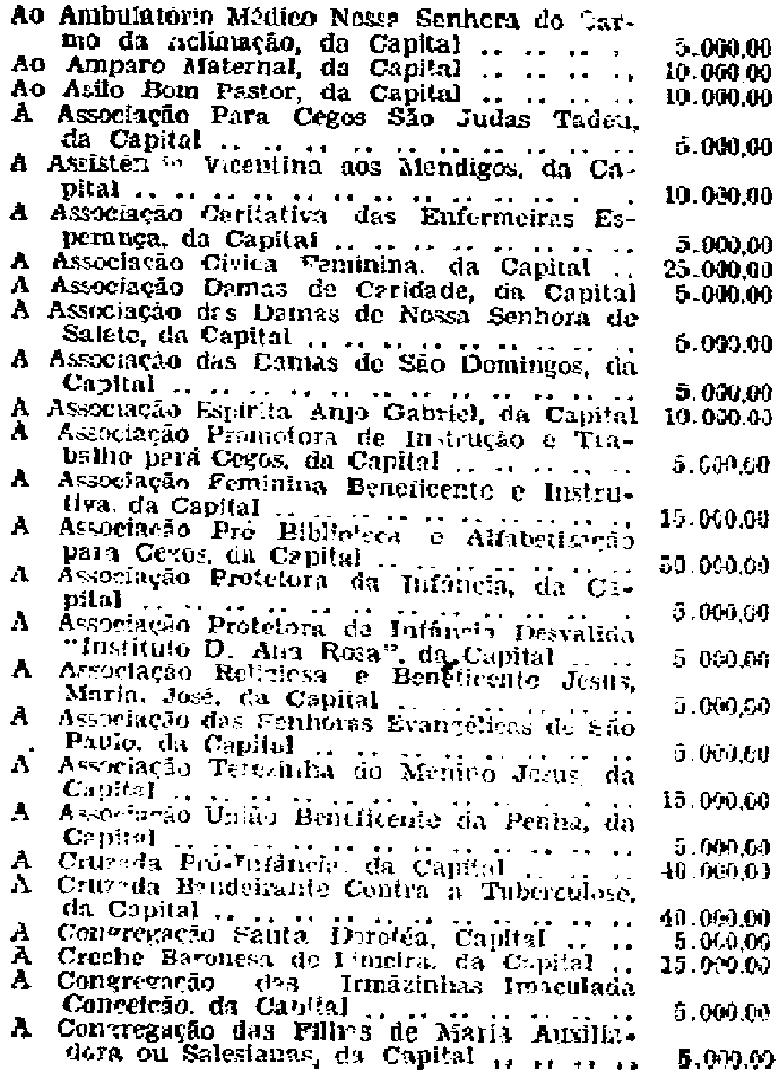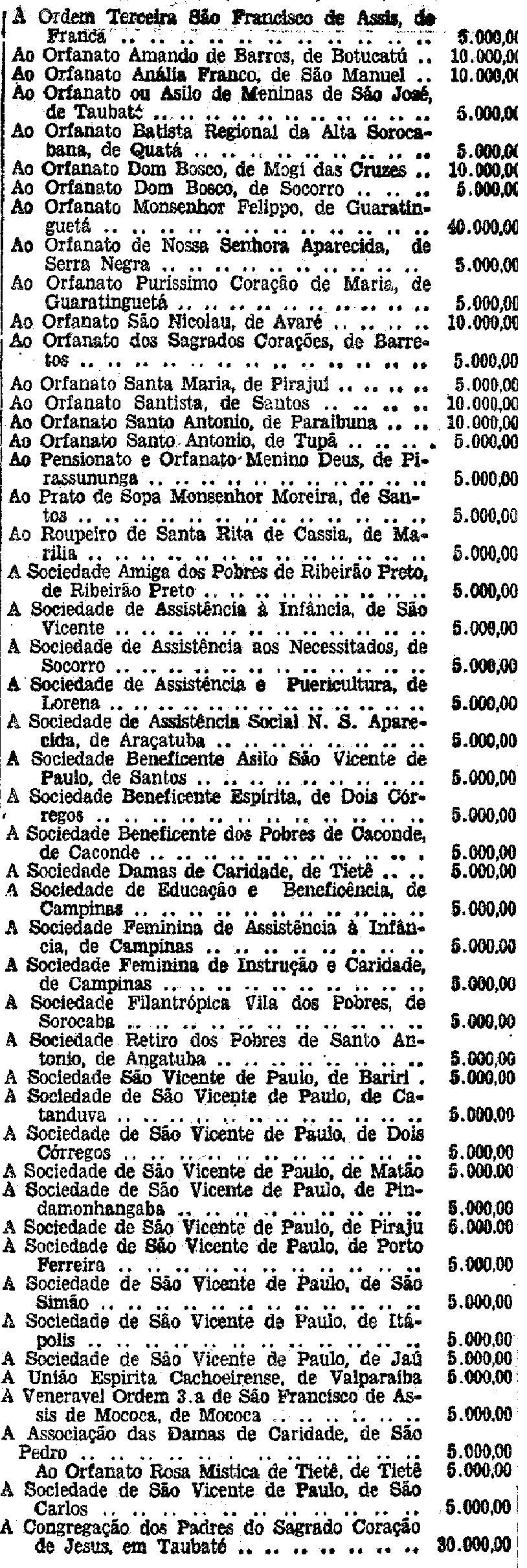 No artigo 1.°, onde se lê: A Congregação Santa Dorotéa, Capital; Leia-se: A Congregação Santa Dorotéa, da Capital. No mesmo artigo, onde se lê: A Congregação dos Padres do Sagrado Coração de Jessus, em Taubaté: Leia -se: A Congregação dos Padres do Sagrados Coração de Jesus de Taubaté.