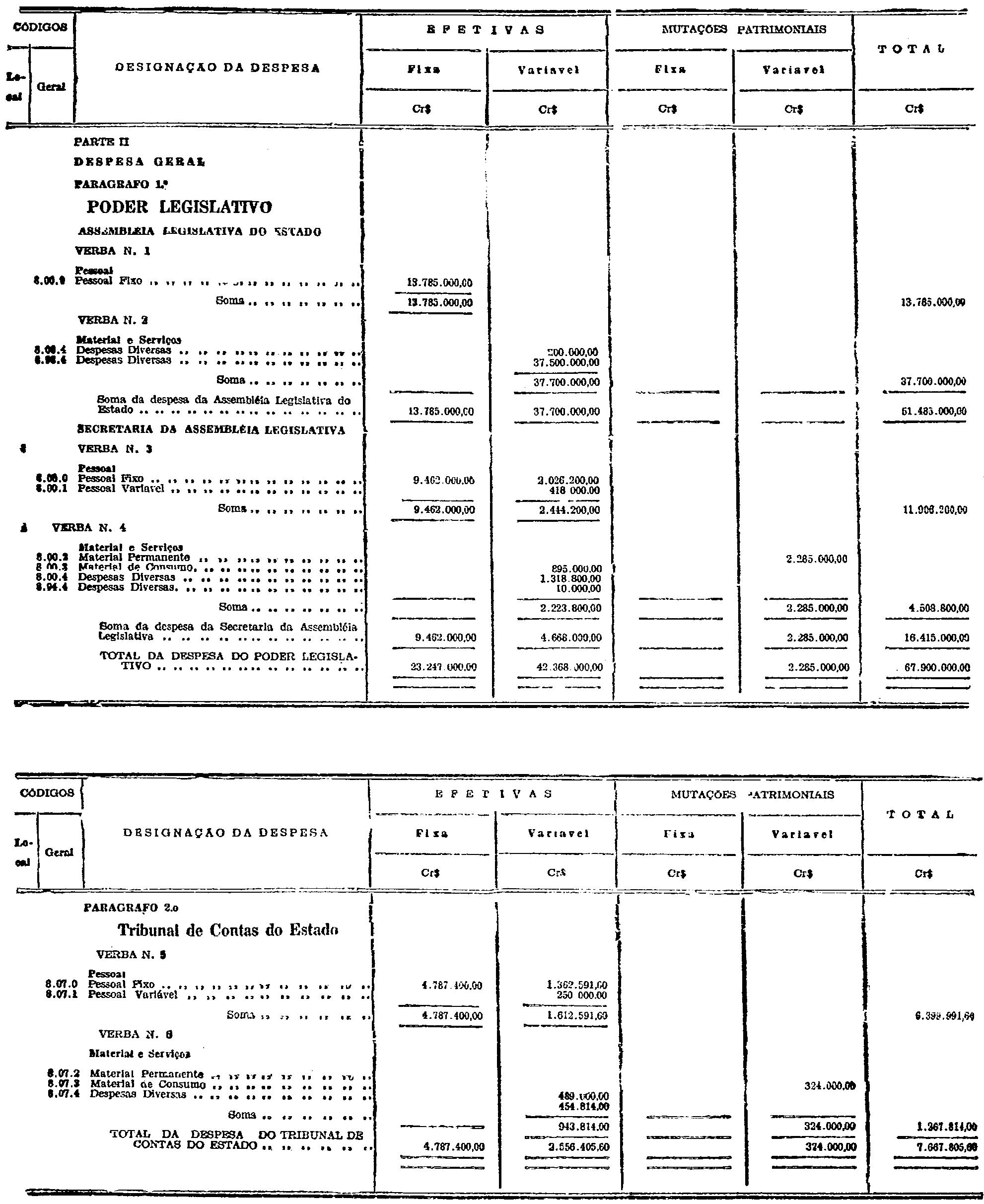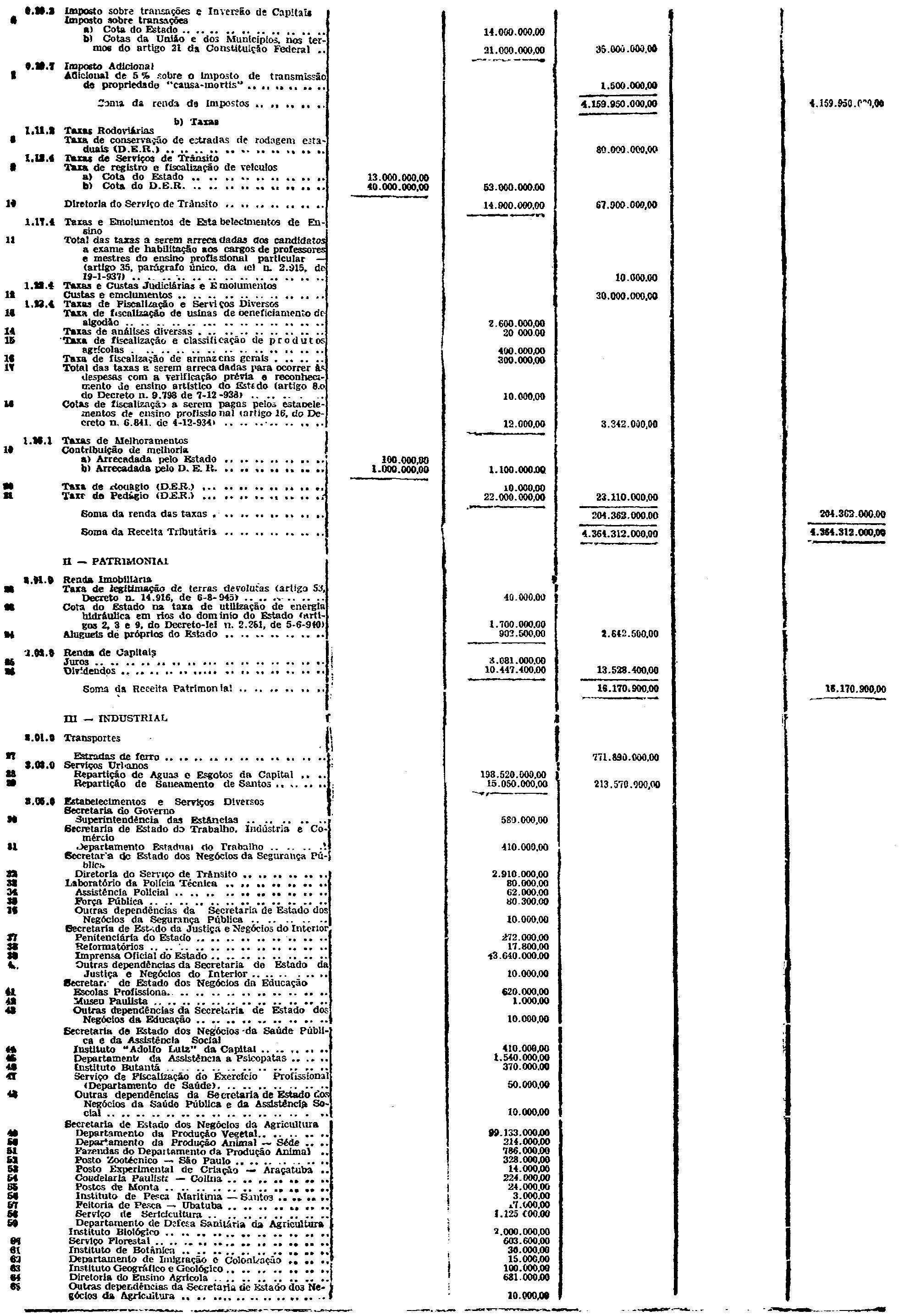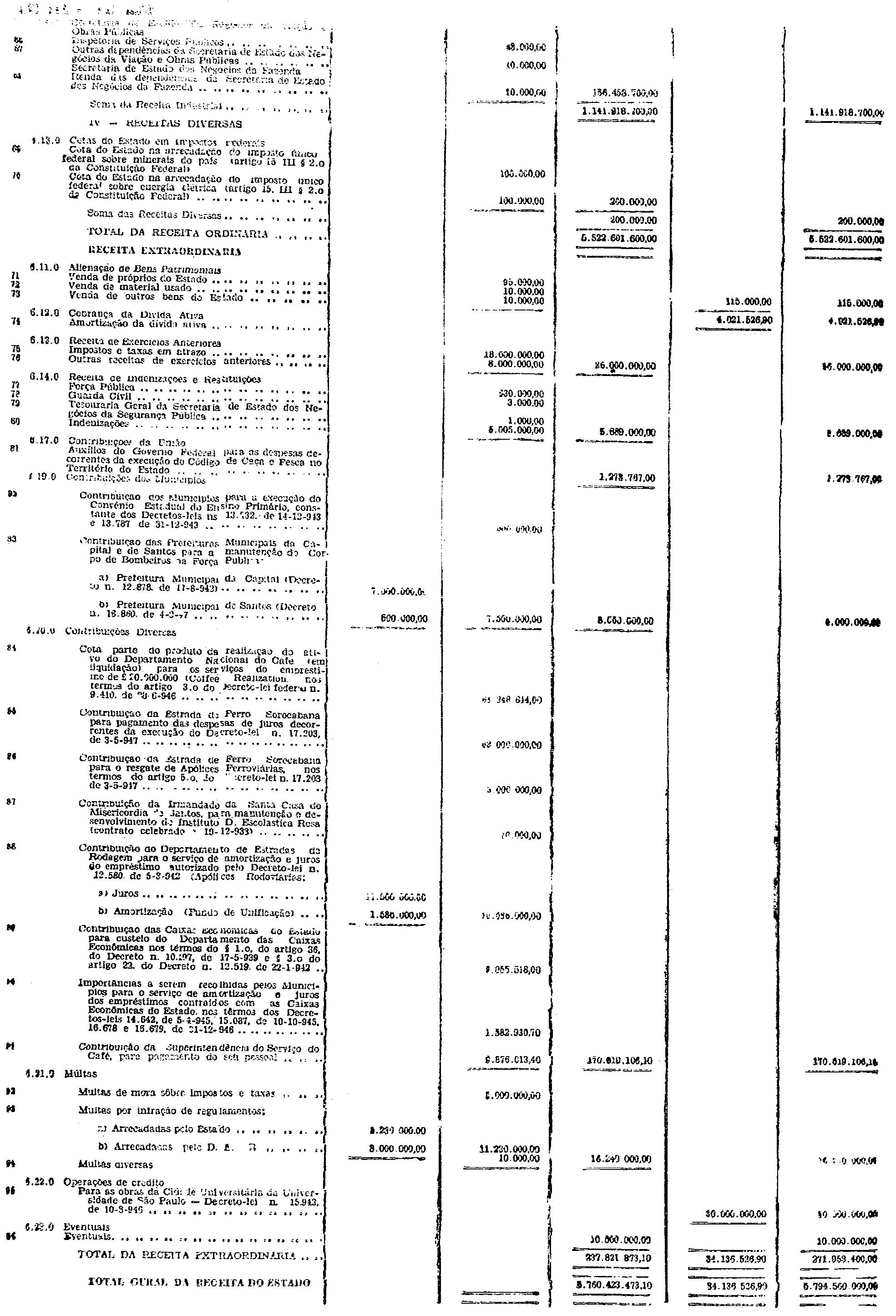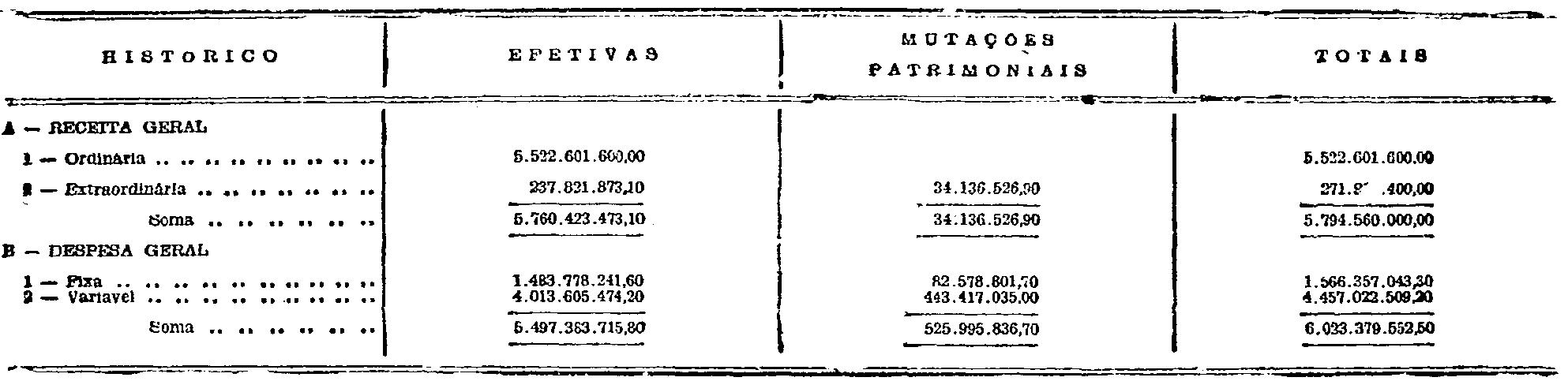 Artigo 1.º - Ficam orçadas e fixadas para o exercicio financeiro de 1950, respectivamente, as seguintes receitas e despesas: