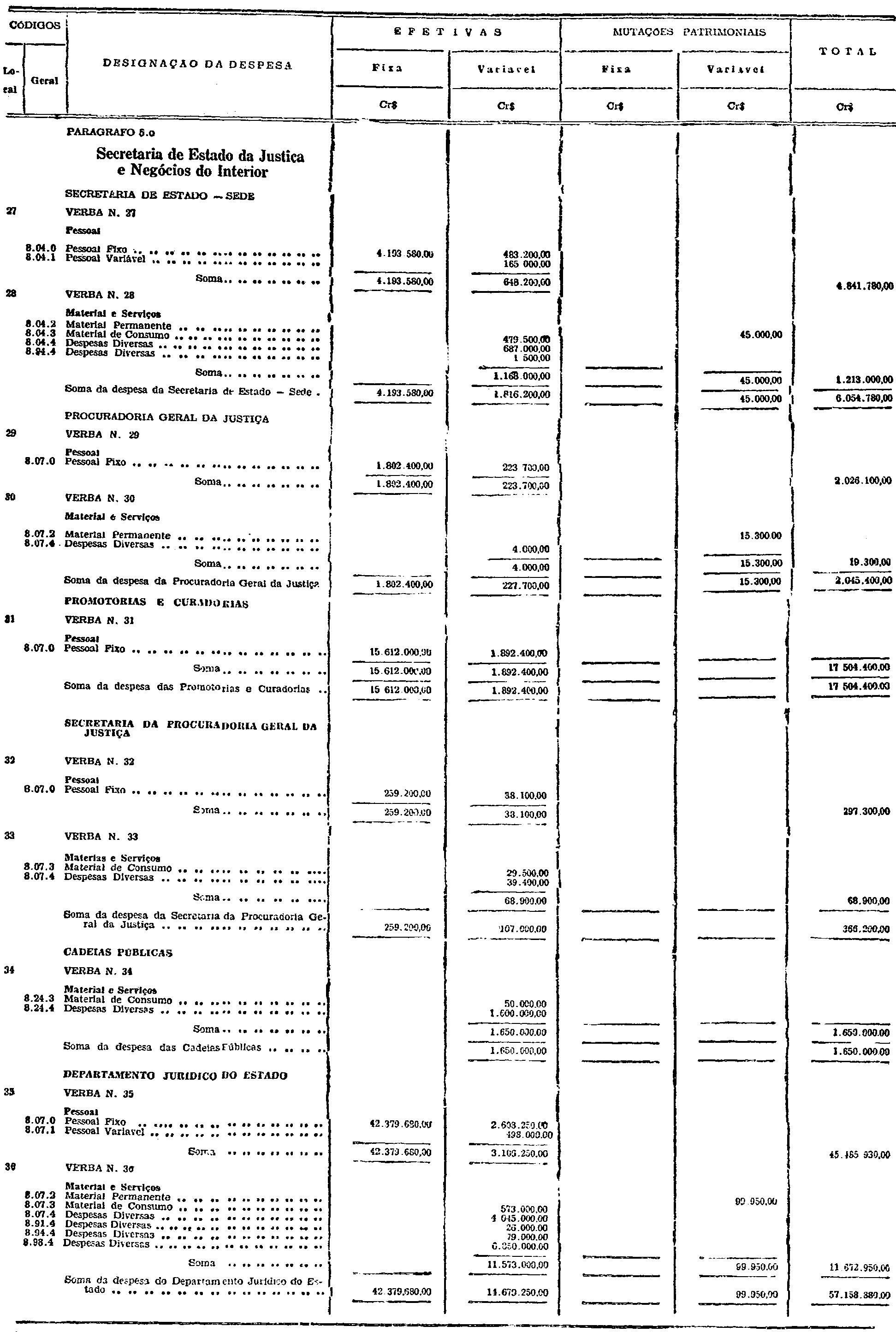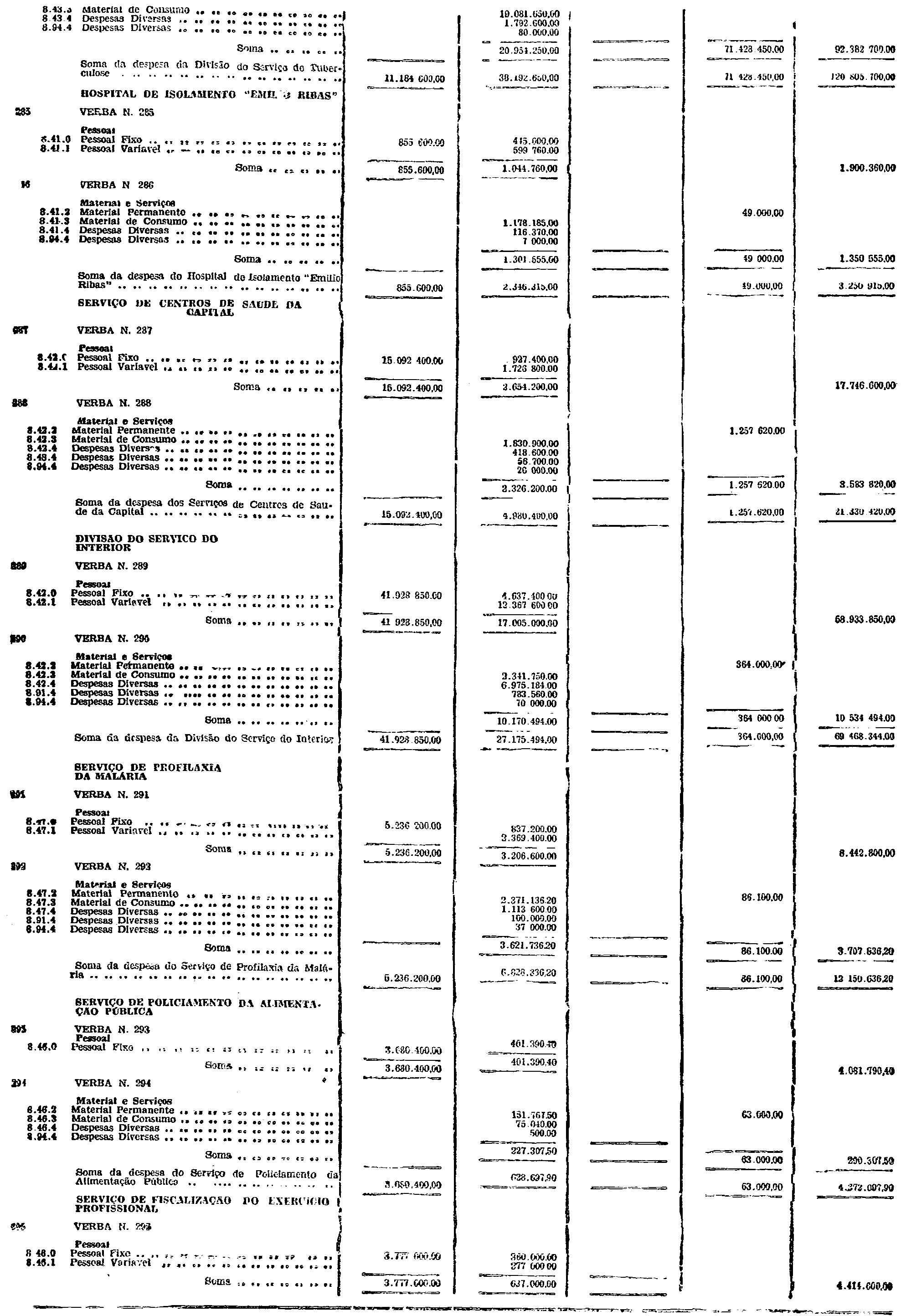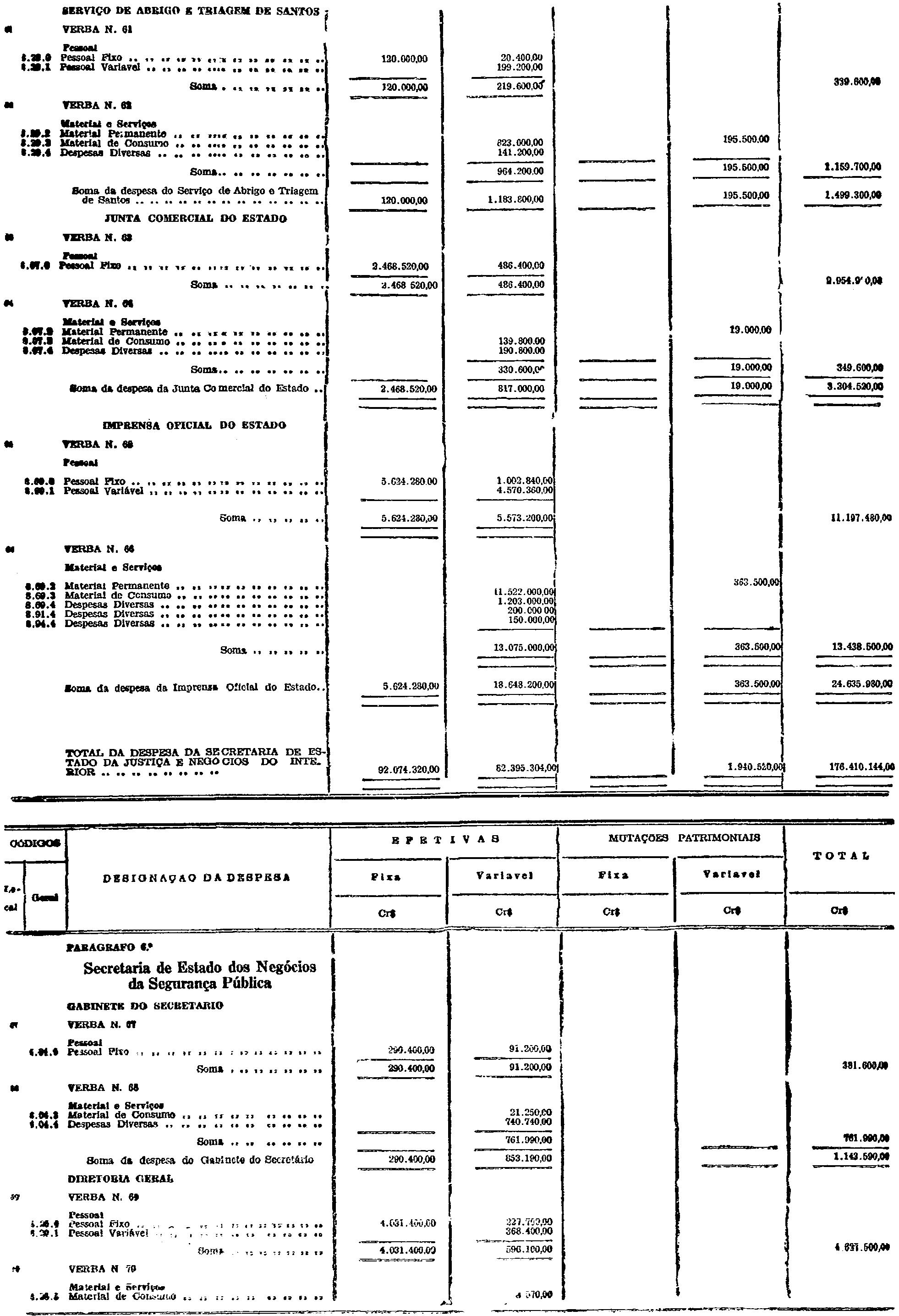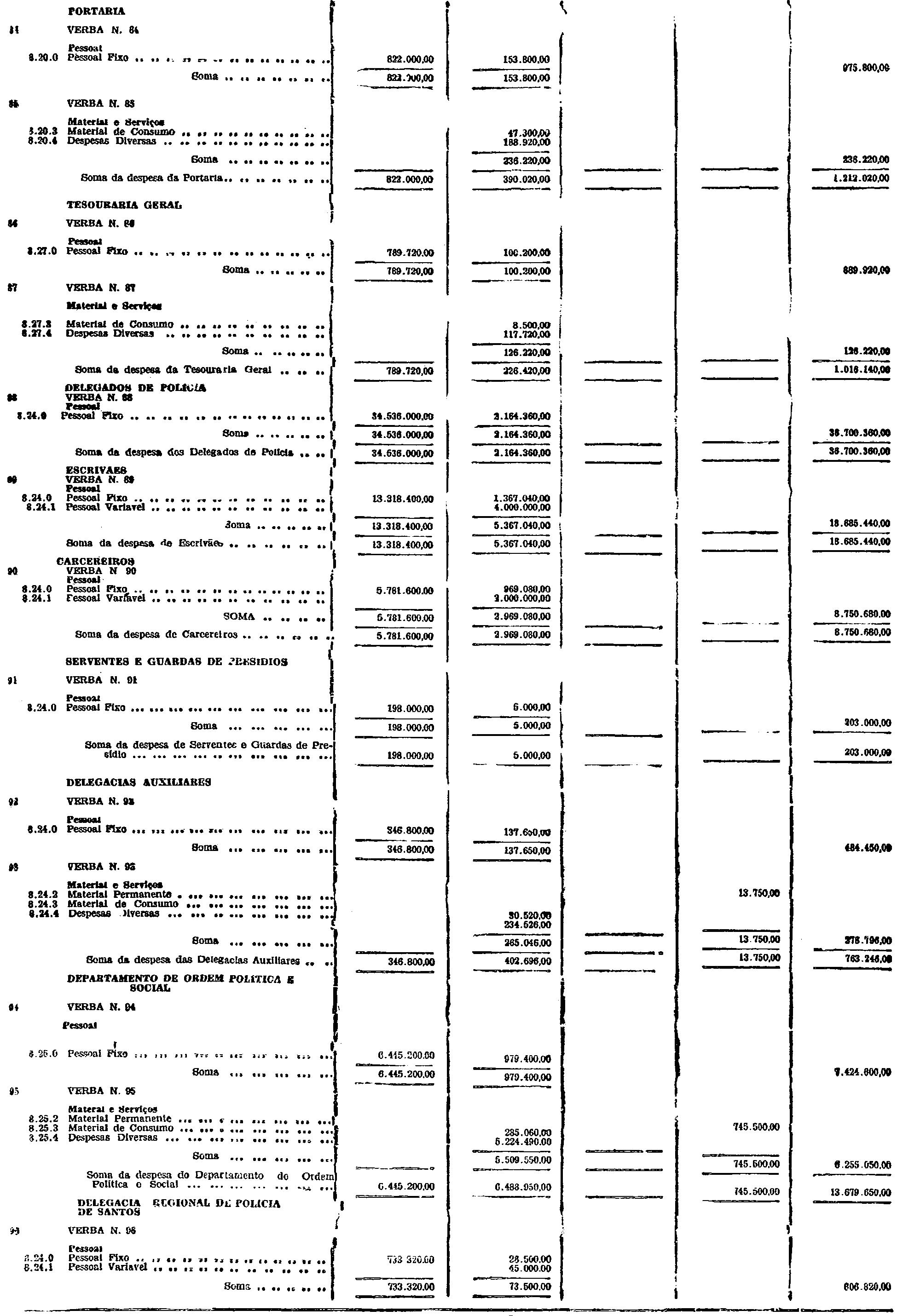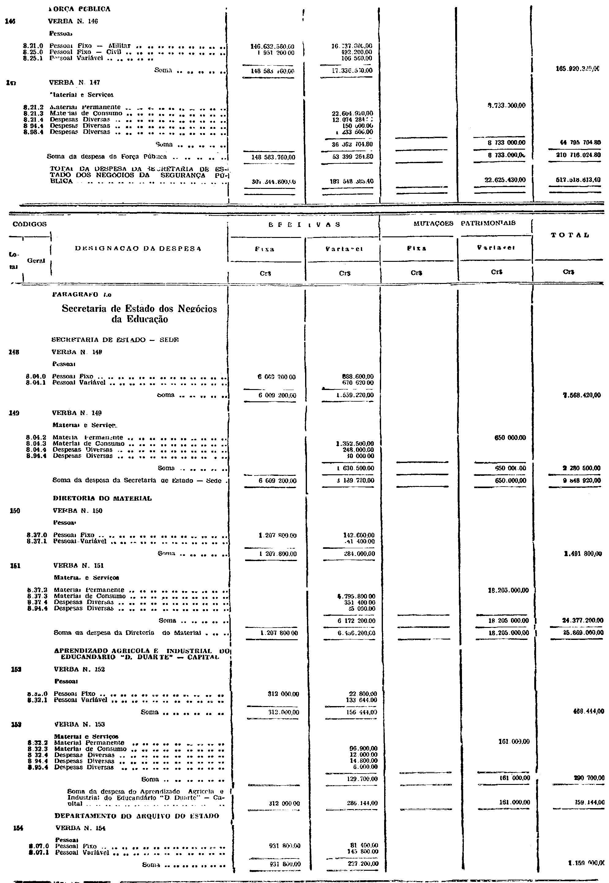 d) as de Pessoal Fixo e Variavel da Fôrça Pública;