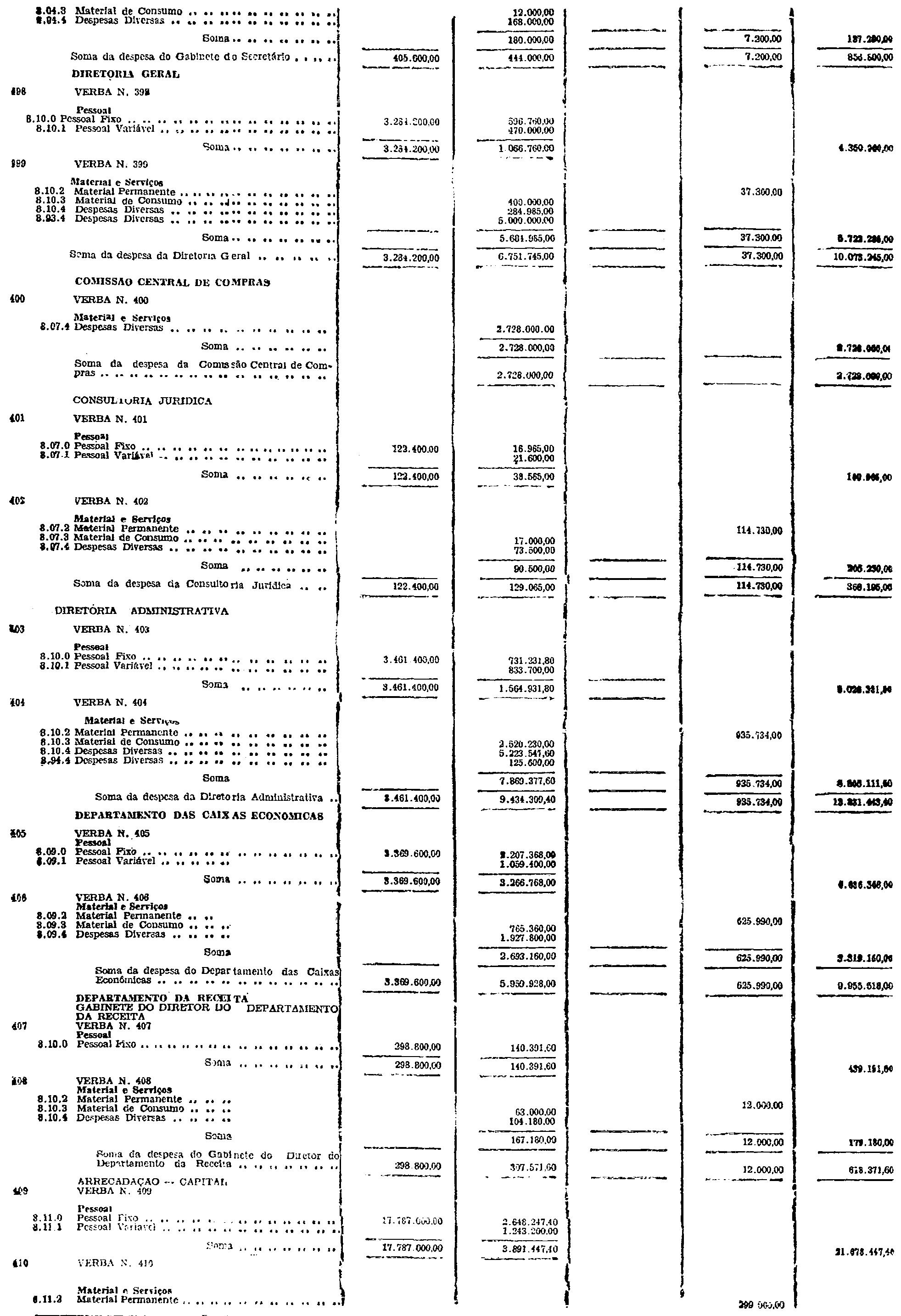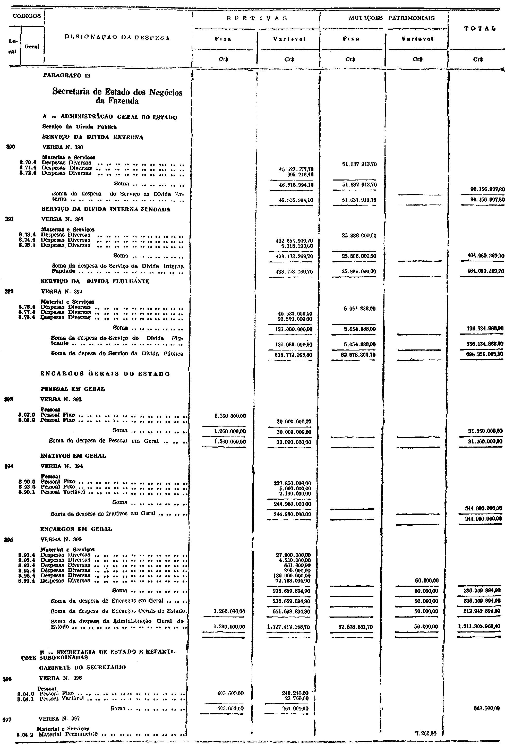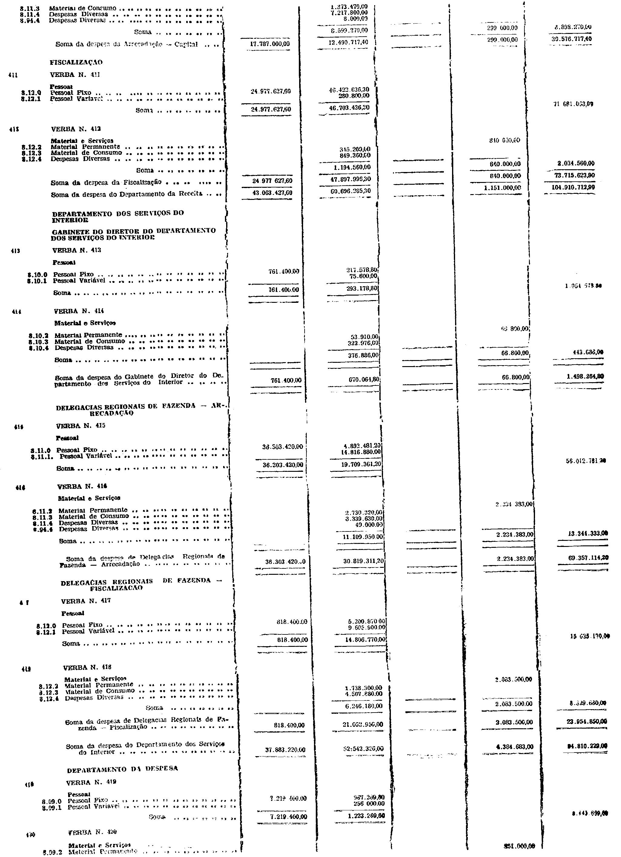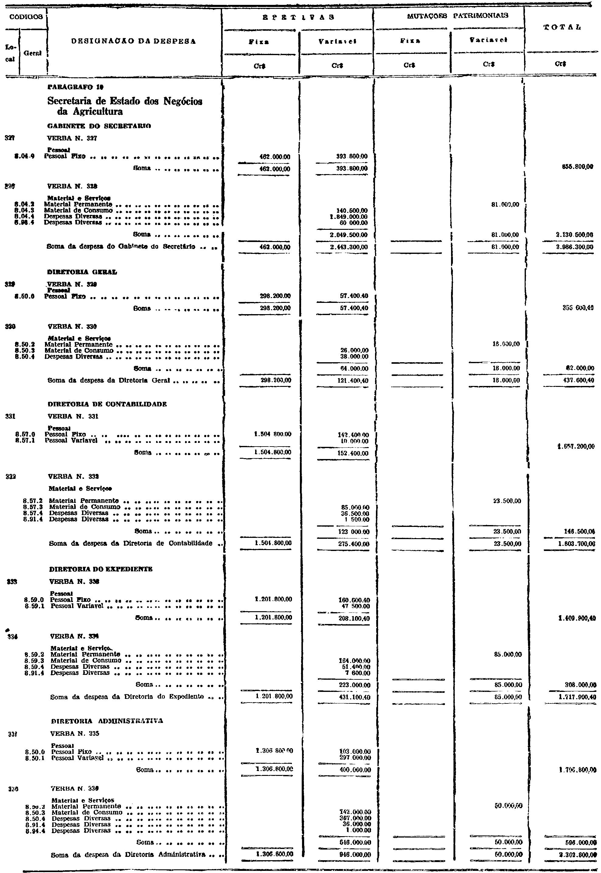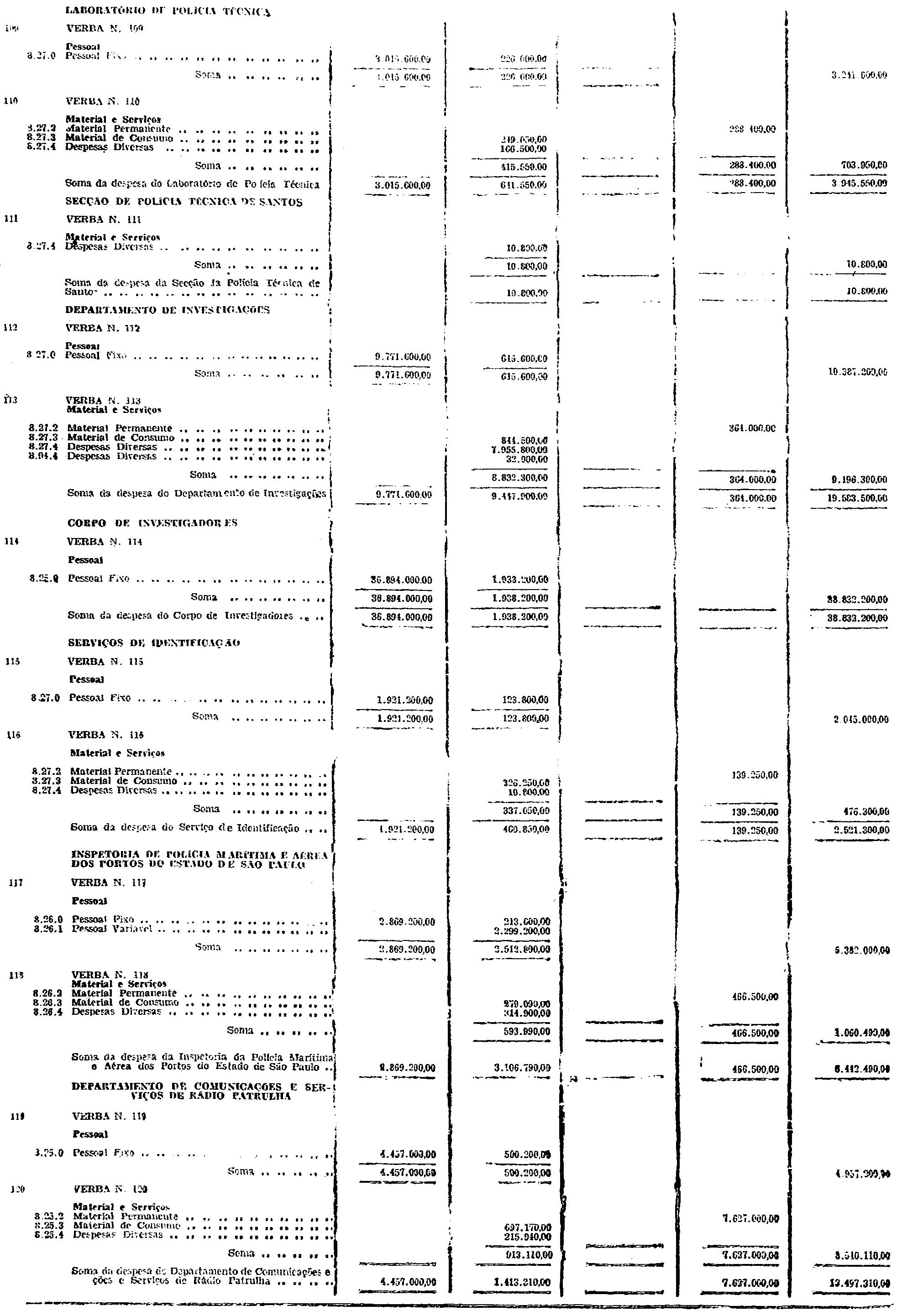d) as de Pessoal Fixo e Variavel da Fôrça Pública;