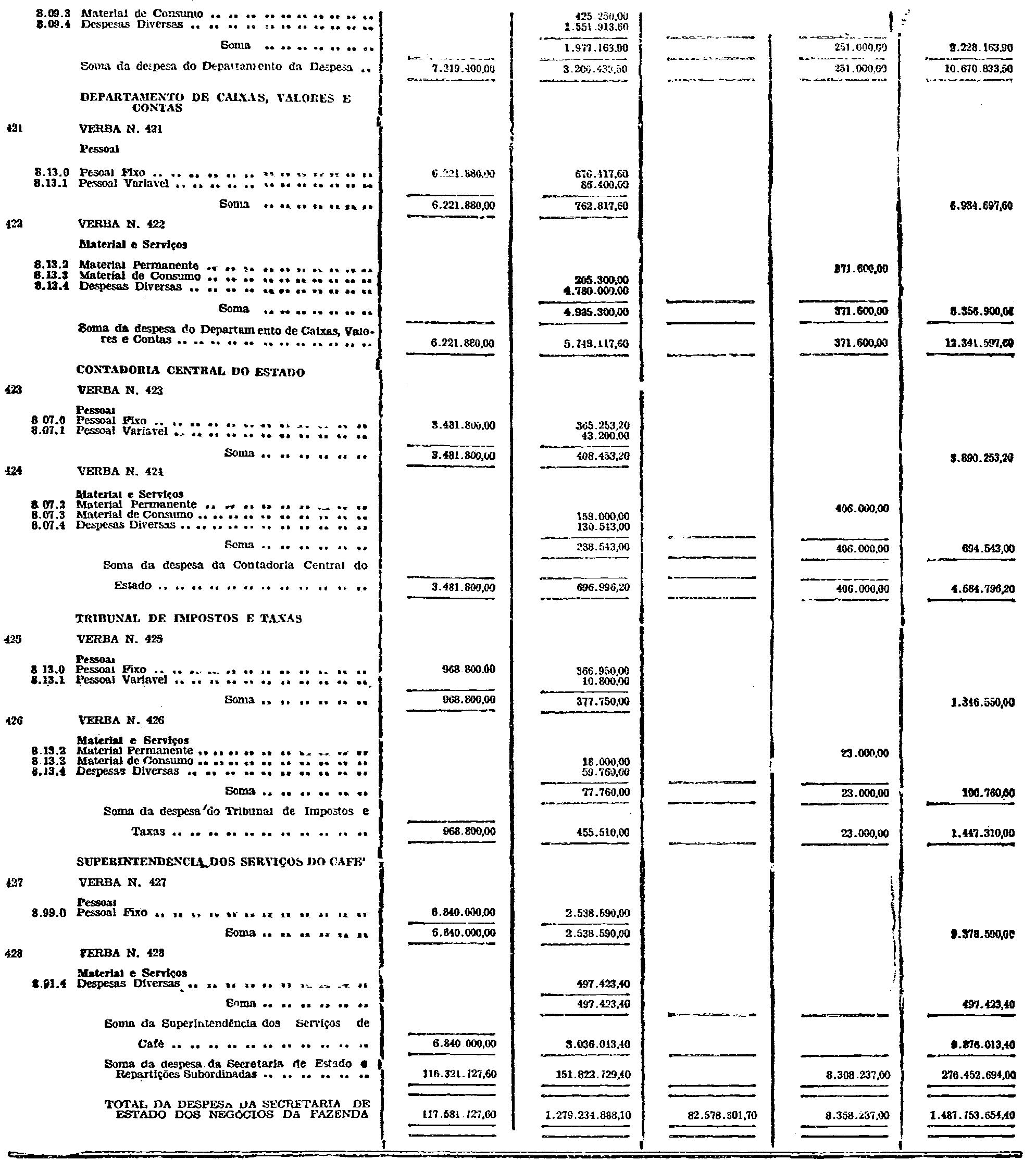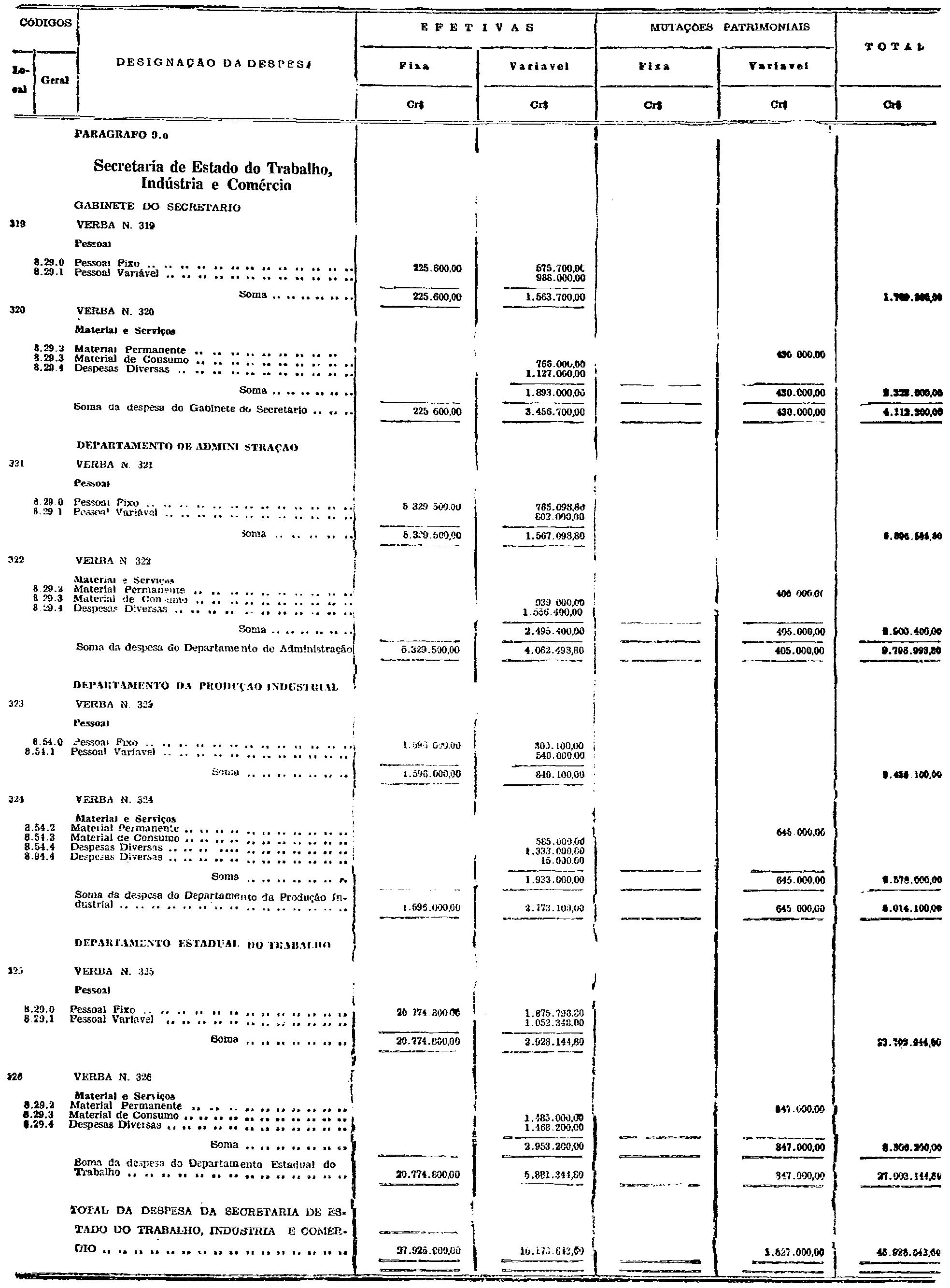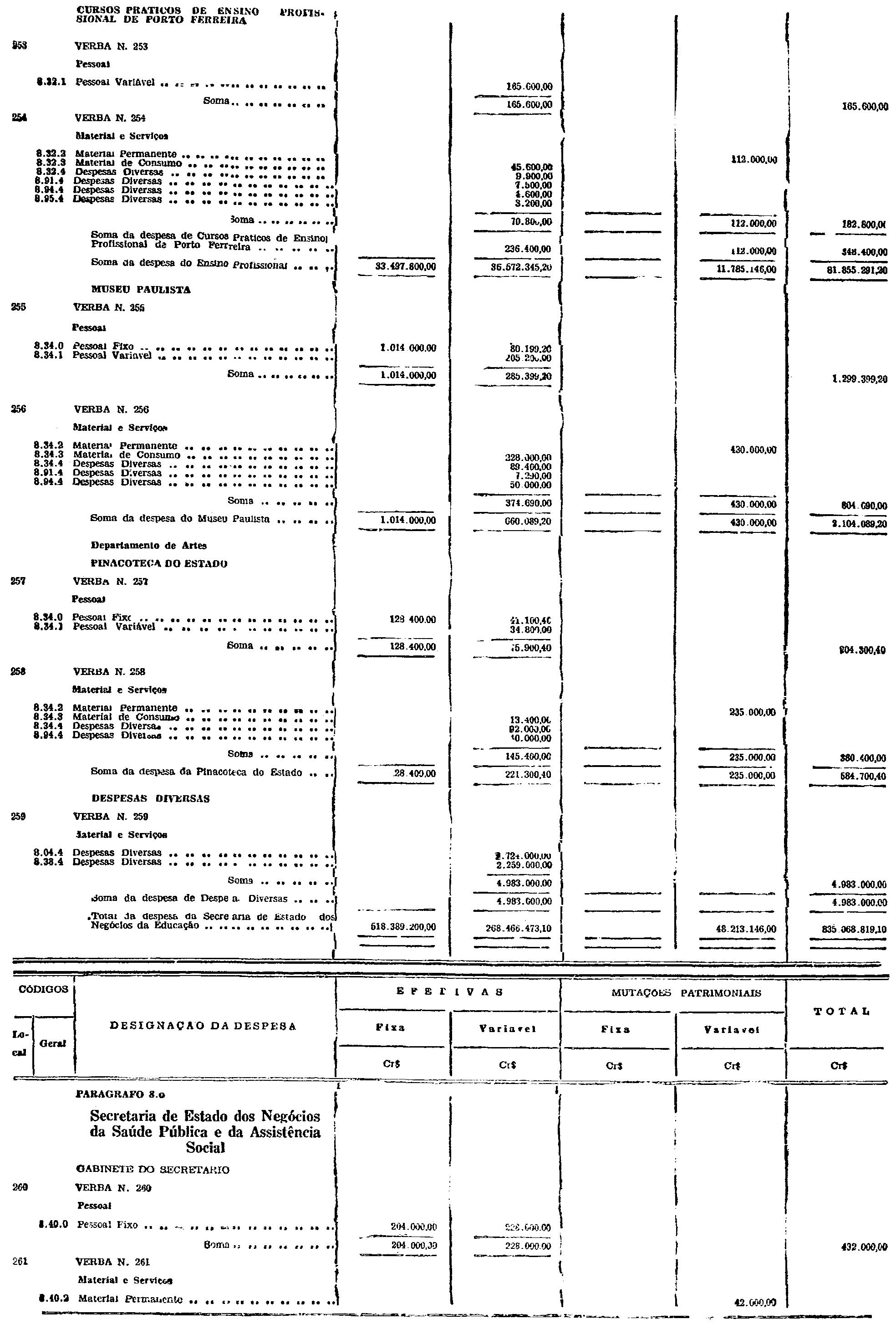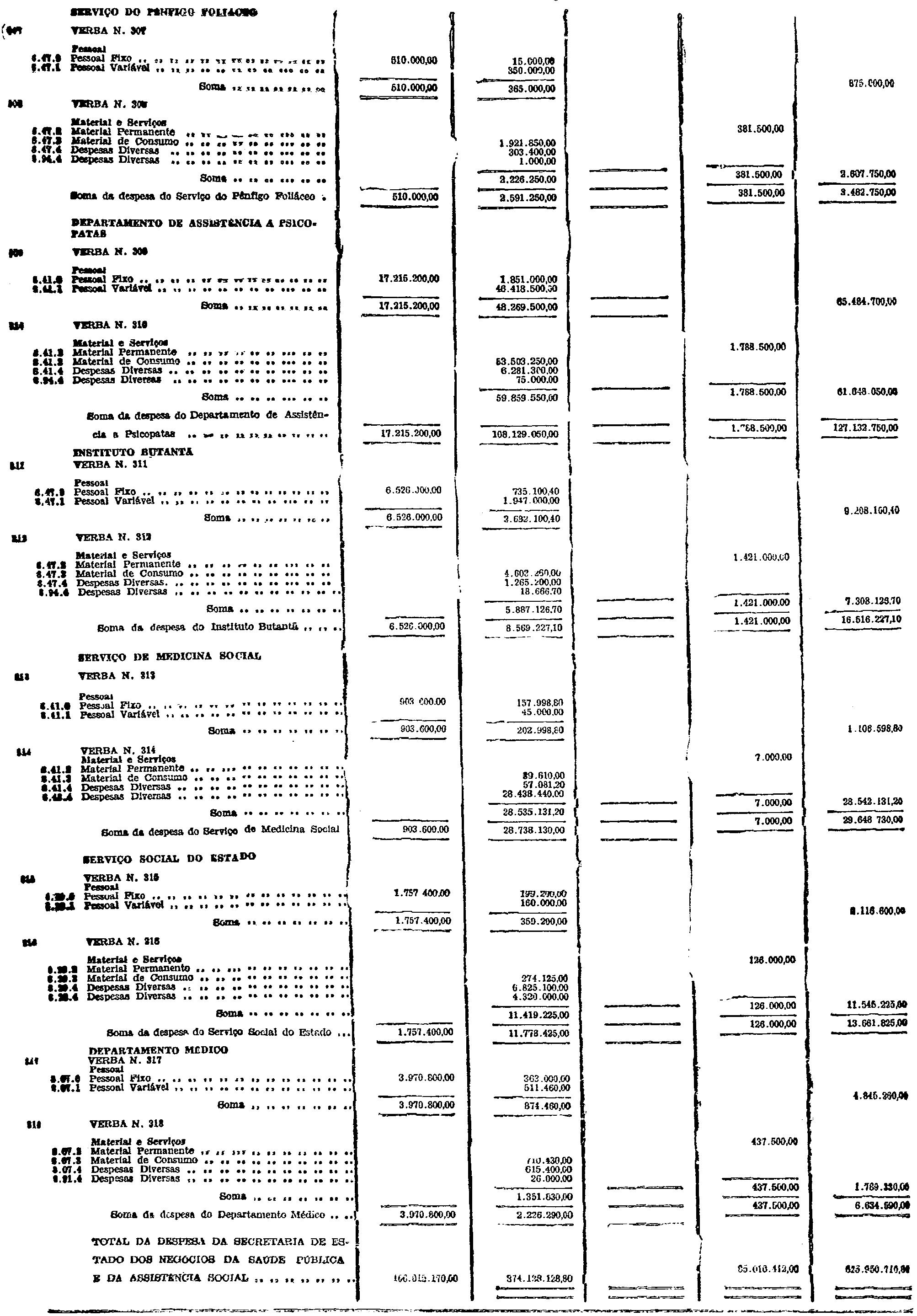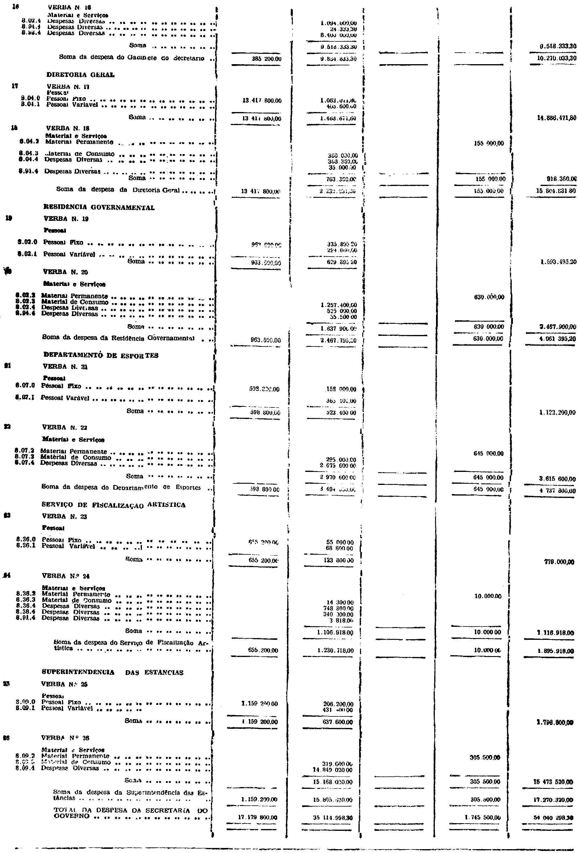 d) as de Pessoal Fixo e Variavel da Fôrça Pública;