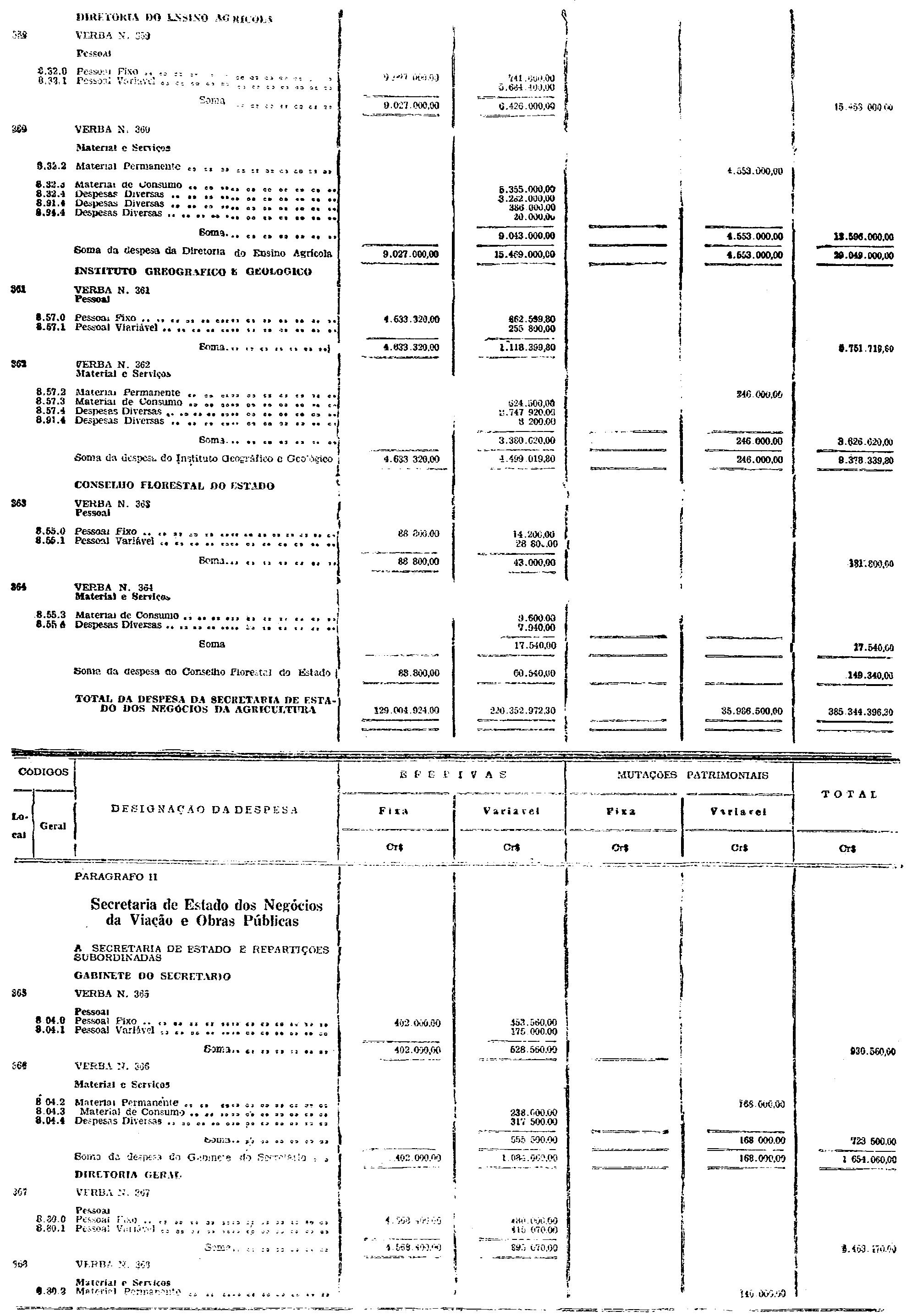 § 2.º - Excluem-se igualmente das disposições dêste artigo as seguintes dotações: