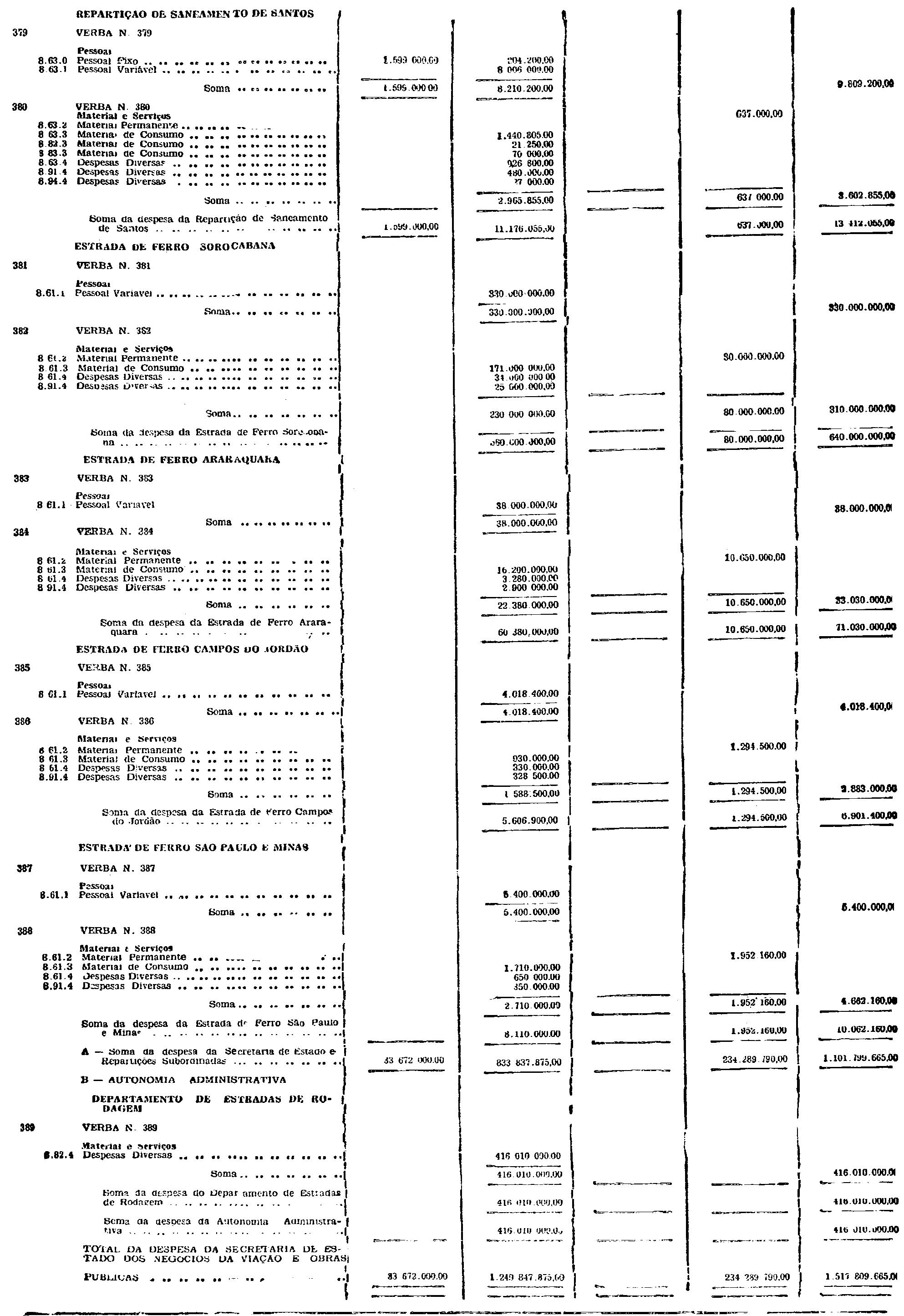 ns. 382 384, 386, 388 e 389 do Departamento de Estradas de Rodagem e
