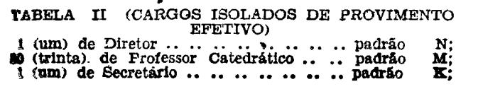 Secretaria do Govêrno, os seguintes cargos destinados ao Conservatório